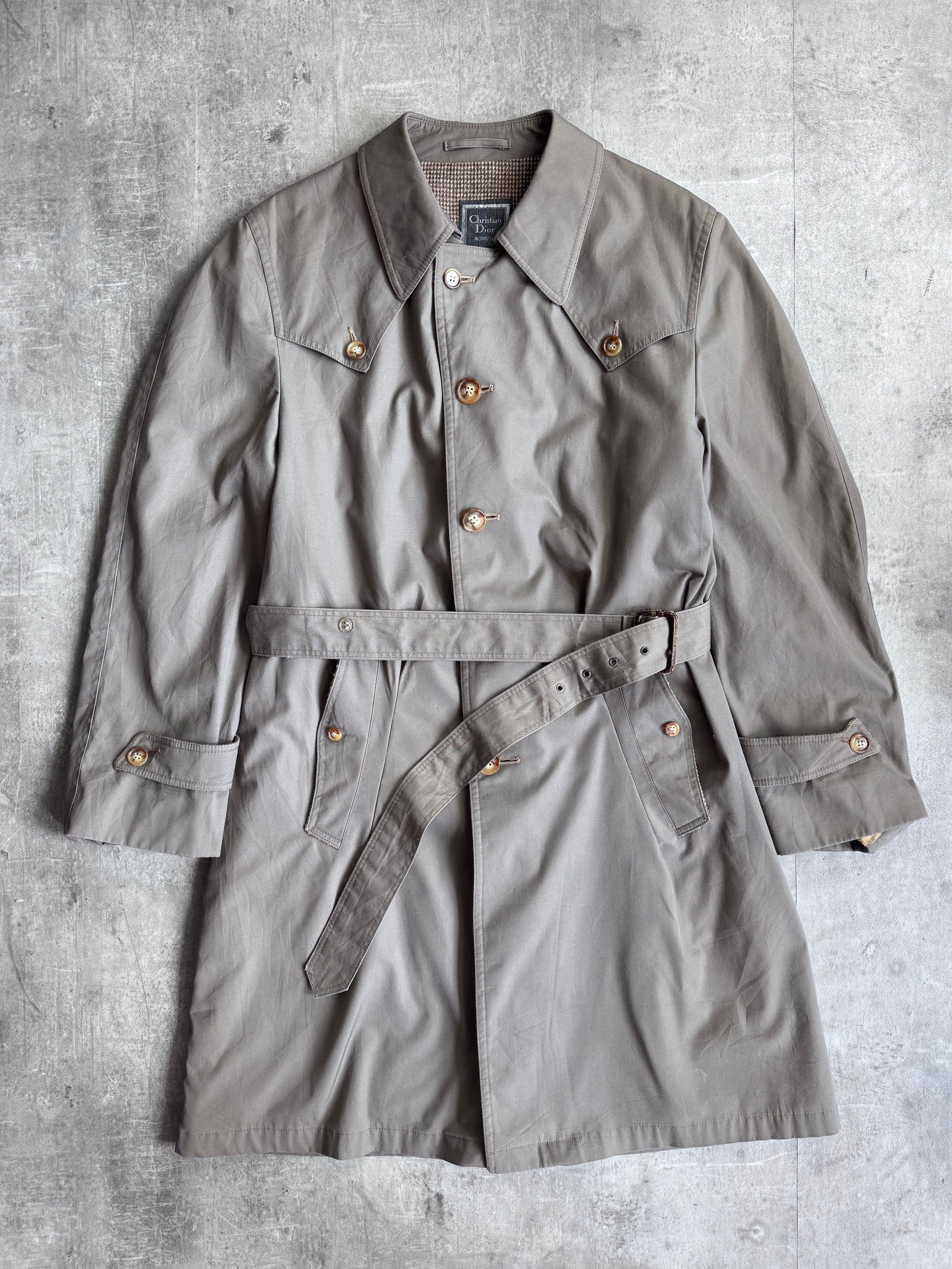 The double-breasted front, structured shoulders, and classic trench silhouette create a refined, elongated look, while subtle detailing reflects Dior’s signature understated luxury. Perfect for collectors, vintage fashion enthusiasts, or anyone seeking a standout heritage outerwear piece.