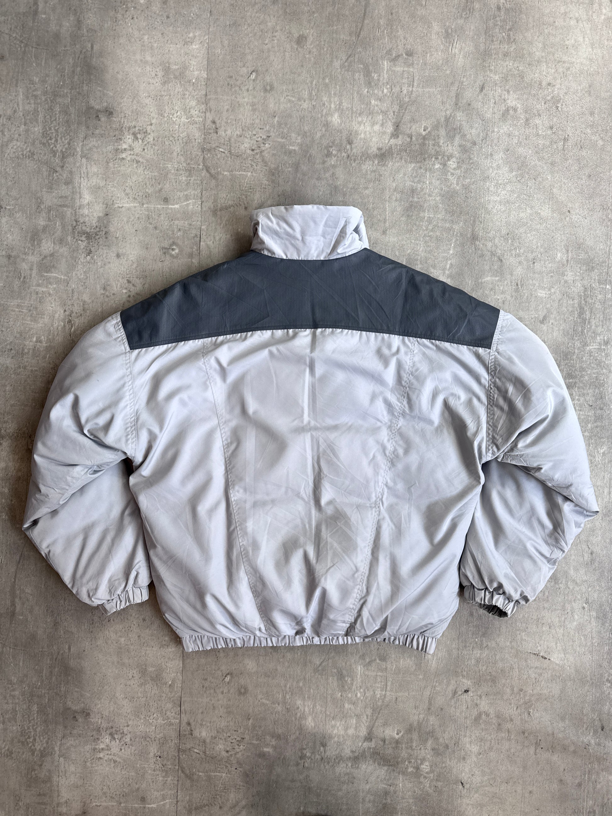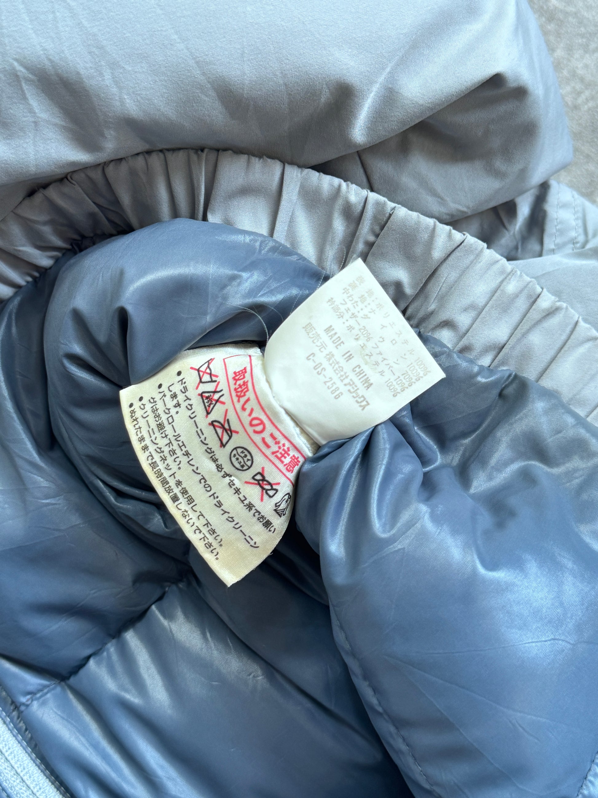 An exceptional 1970s Moncler Cropped Two Grey Padded Jacket, capturing the early design codes that defined Moncler’s mountain heritage. Crafted in Italy, this piece showcases a two-tone grey nylon shell, classic cropped silhouette, and the brand’s iconic felt sleeve badge.