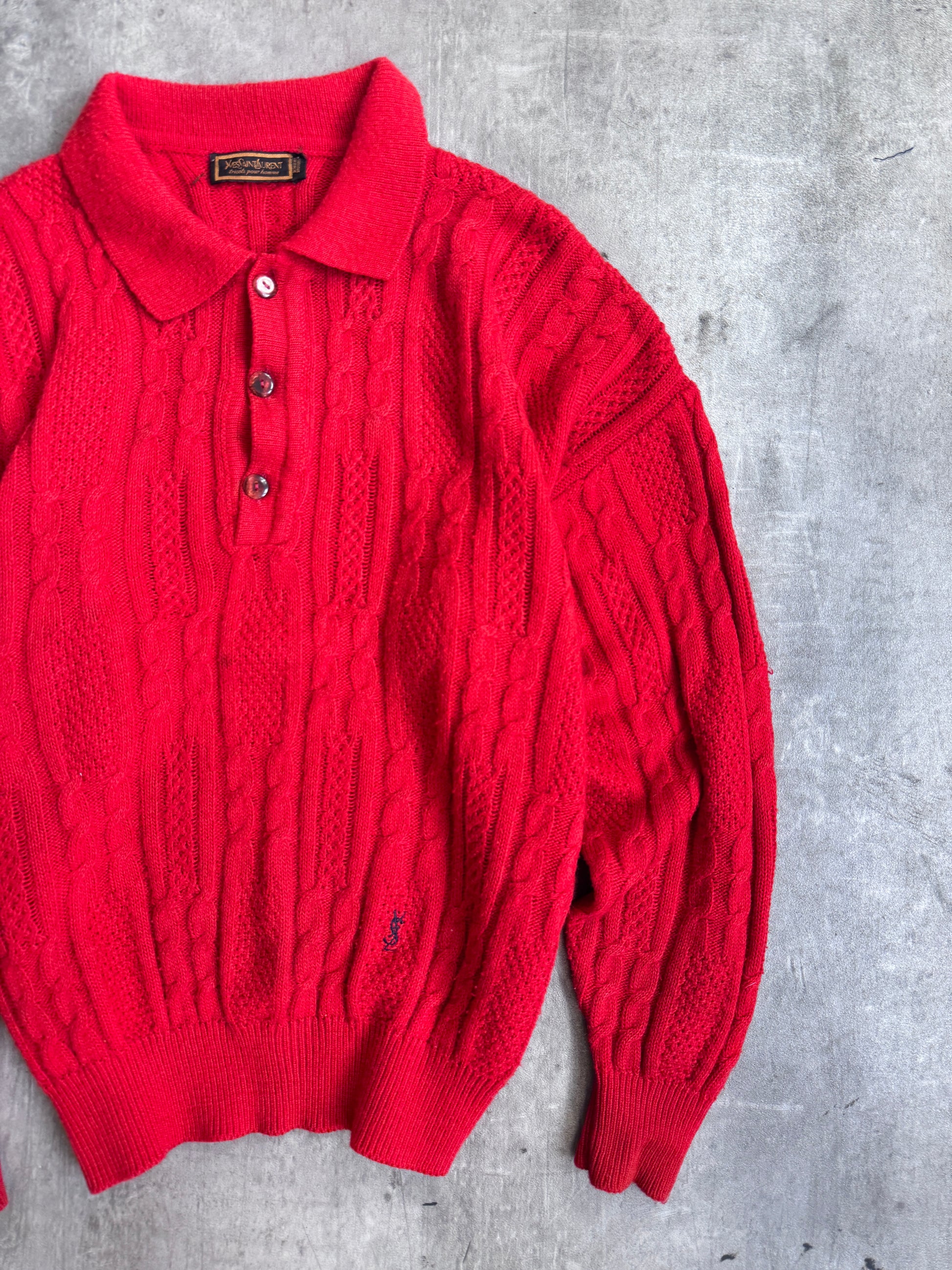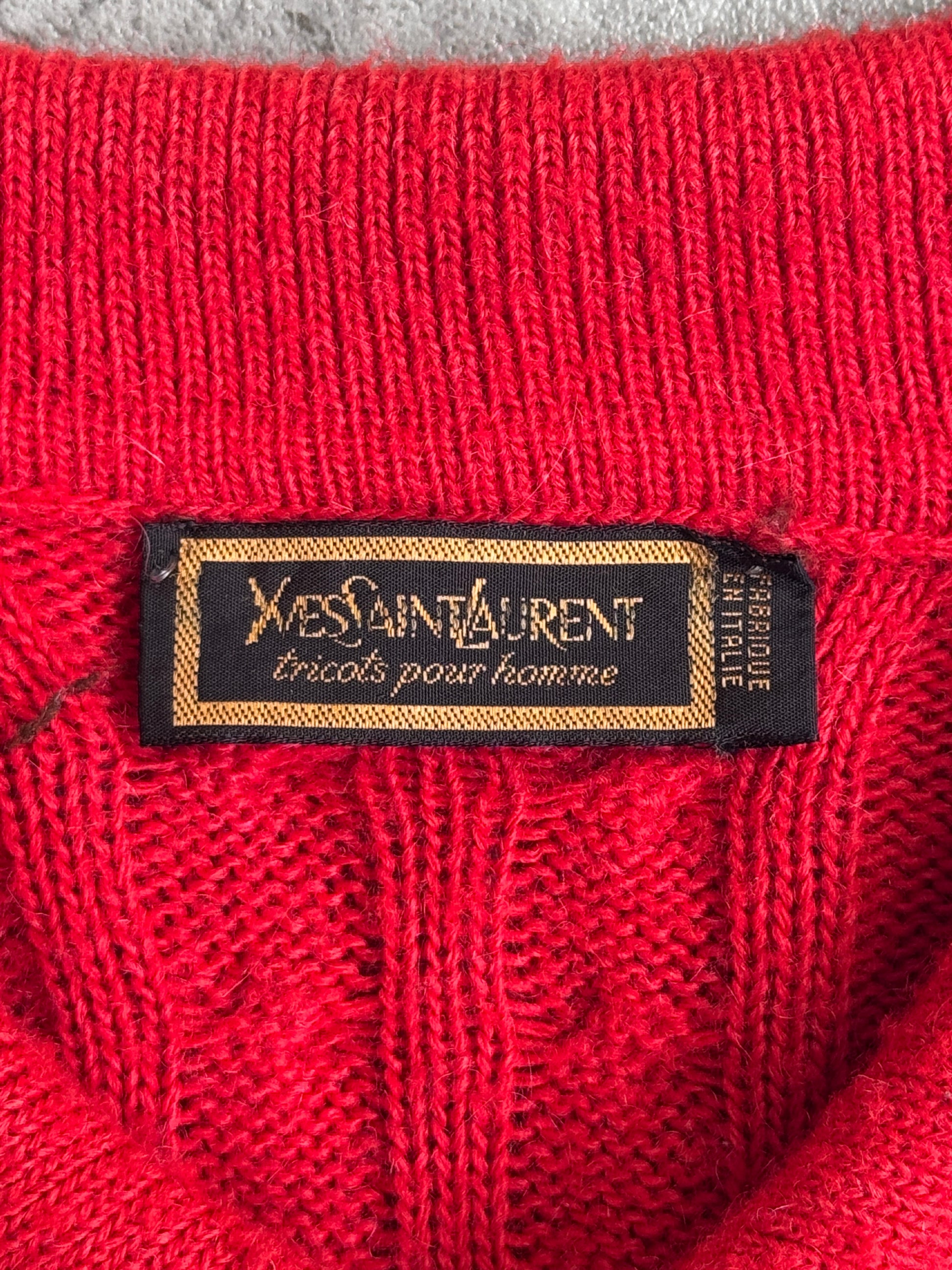 1970's YSL Red Aran Cable Knit Sweater