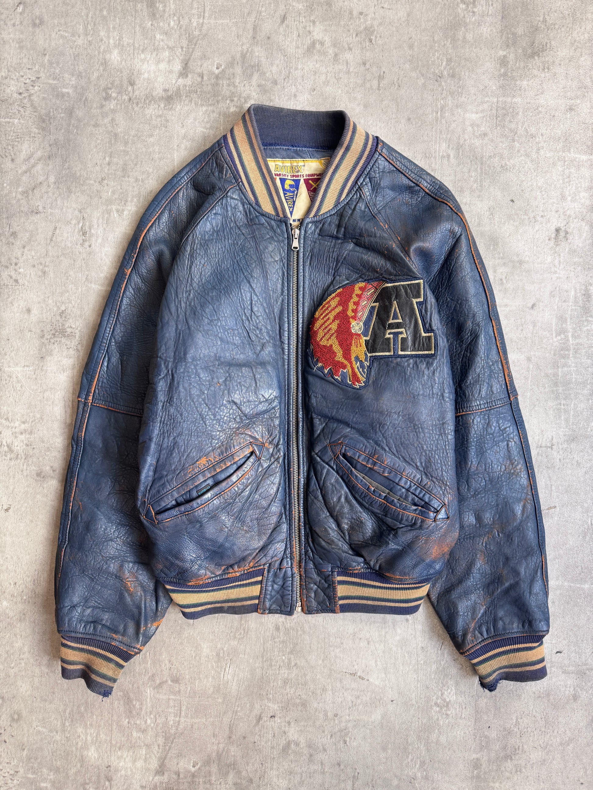 1980's Avirex Varsity Tomahawks Emboidered Blue Leather Bomber