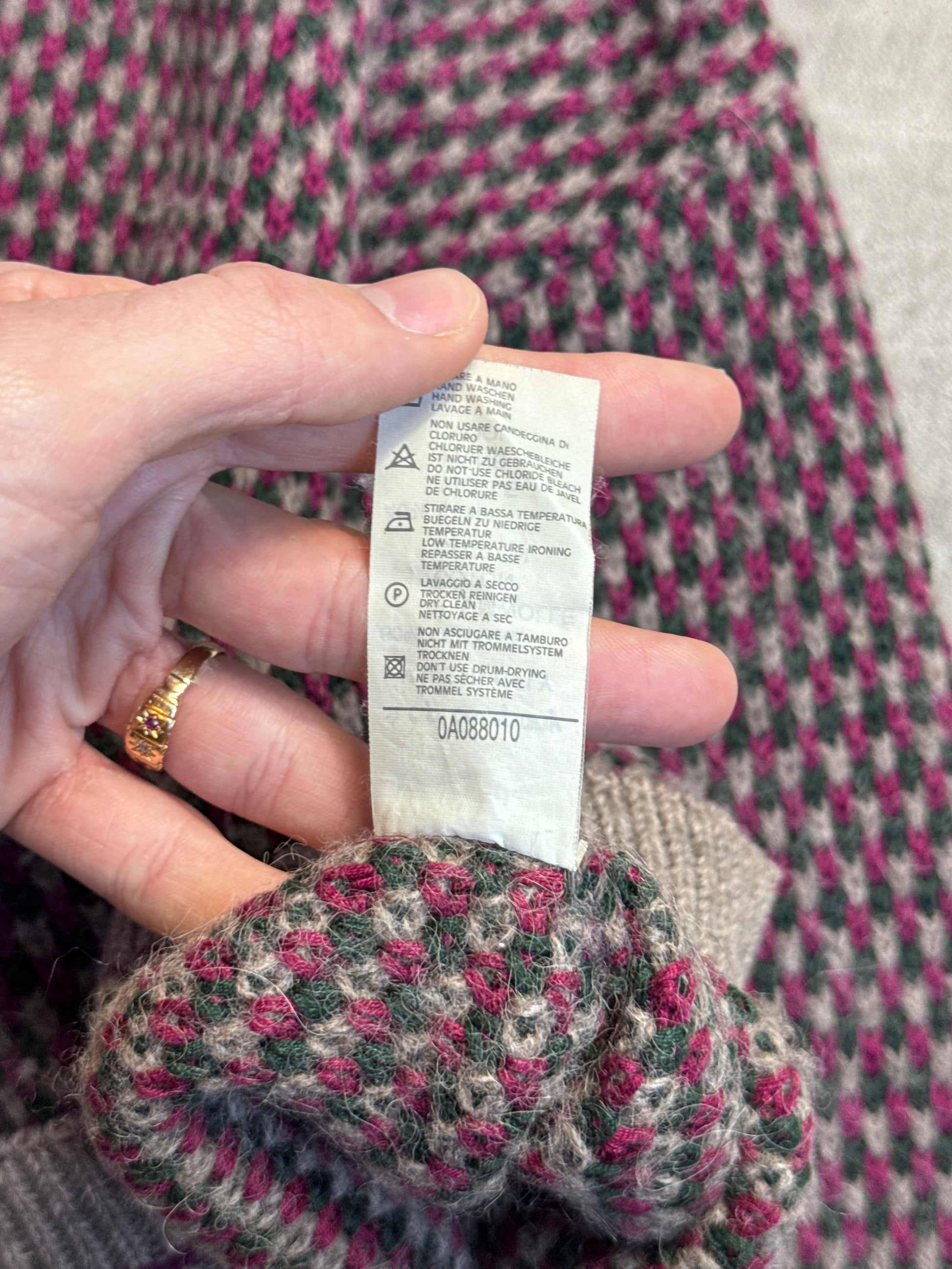 Elevate your vintage knitwear collection with the 1980s C.P. Company Multi Intarsia Wool Rollneck Knit Sweater, a rare archival piece showcasing the brand’s early experimentation with color, pattern, and textile innovation. Crafted from premium wool, this sweater features intricate multi-color intarsia knitting—an iconic hallmark of C.P. Company’s design language during the era.