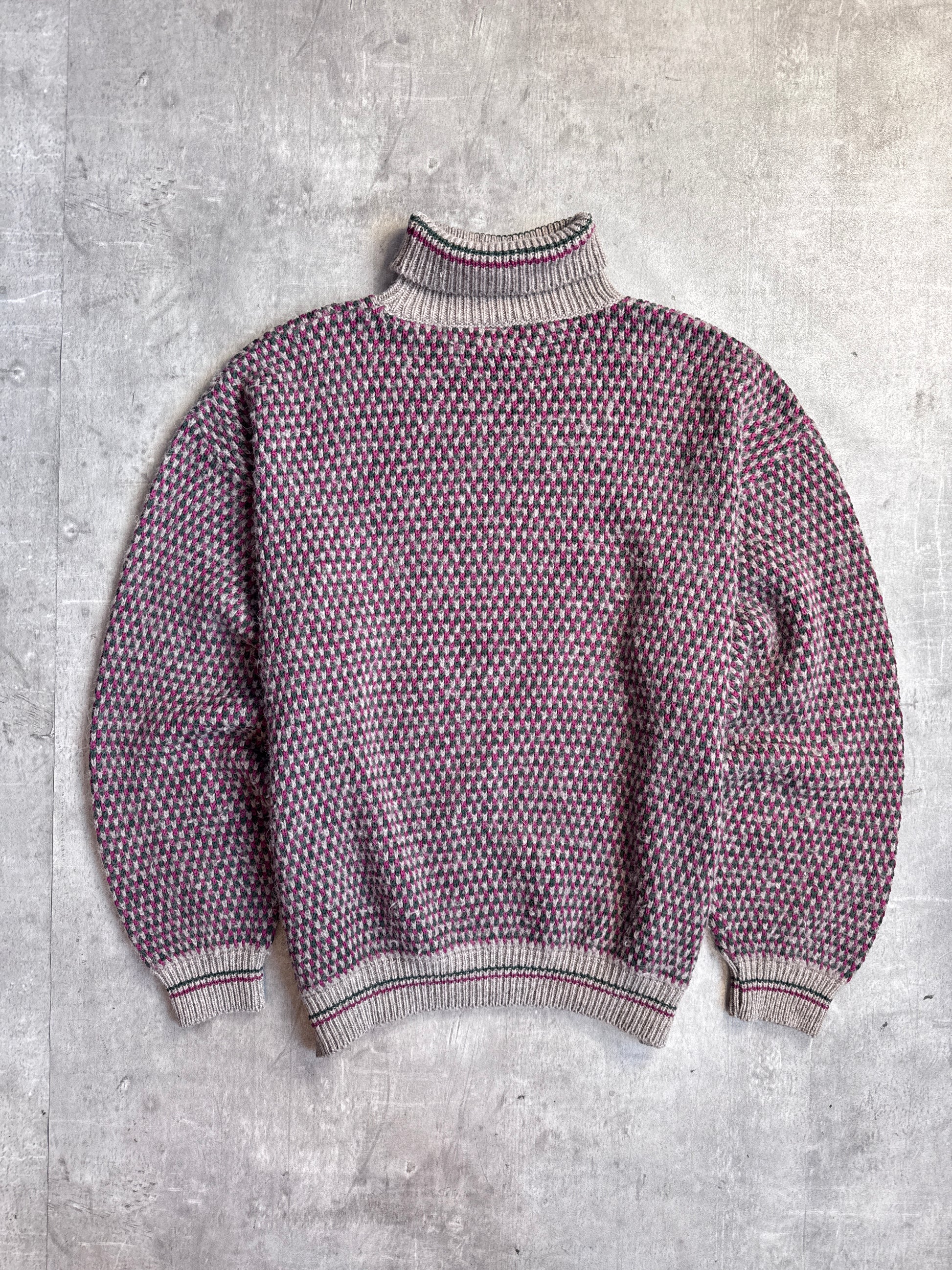 1980s C.P. Company Multi Intarsia Wool Rollneck Knit Sweater