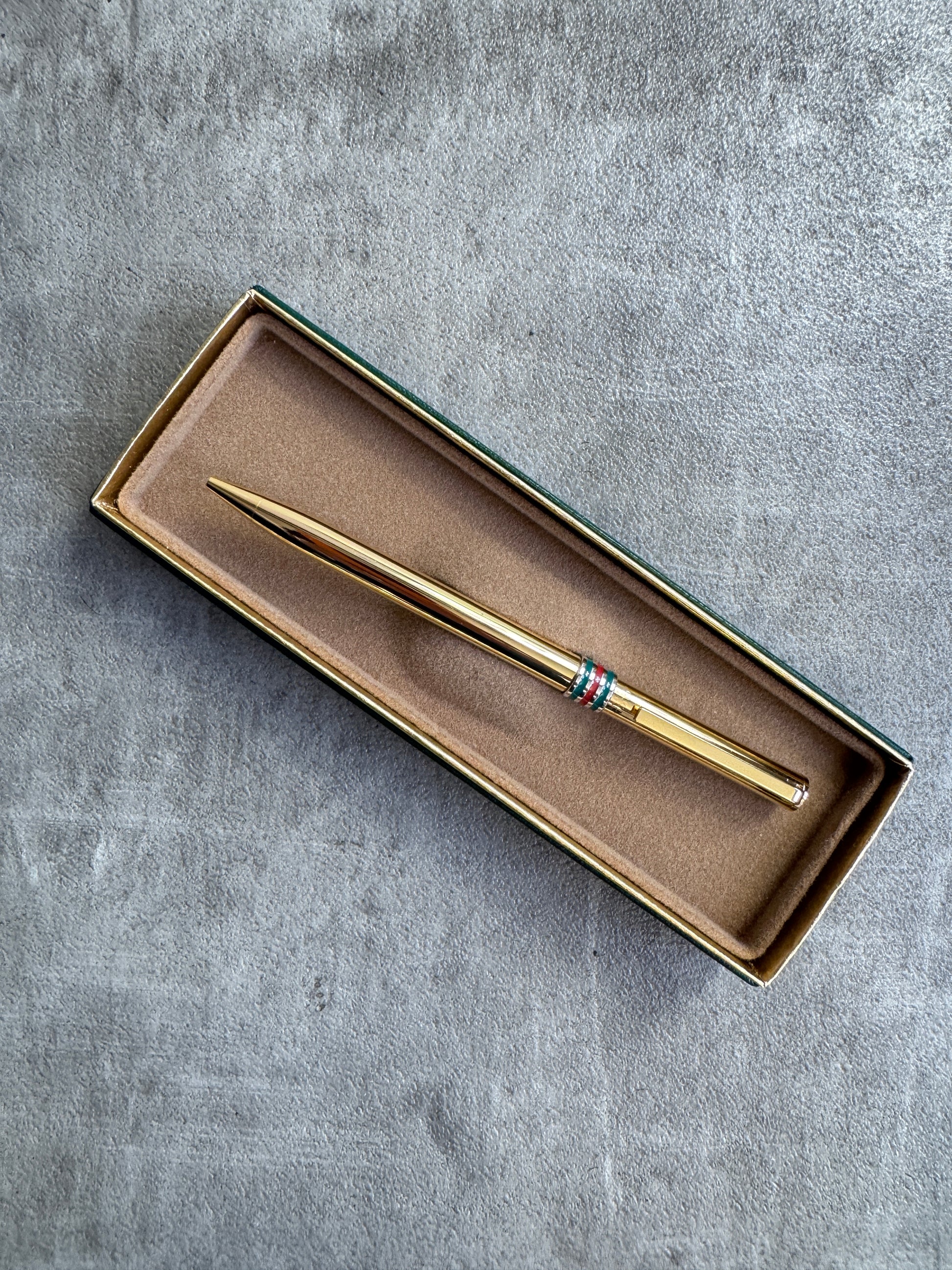 Add a touch of vintage luxury to your desk with the 1980s Gucci Ballpoint Pen, an iconic accessory from the renowned Italian fashion house. Crafted with precision metal construction and finished in classic Gucci detailing, this pen combines timeless style with practical functionality.