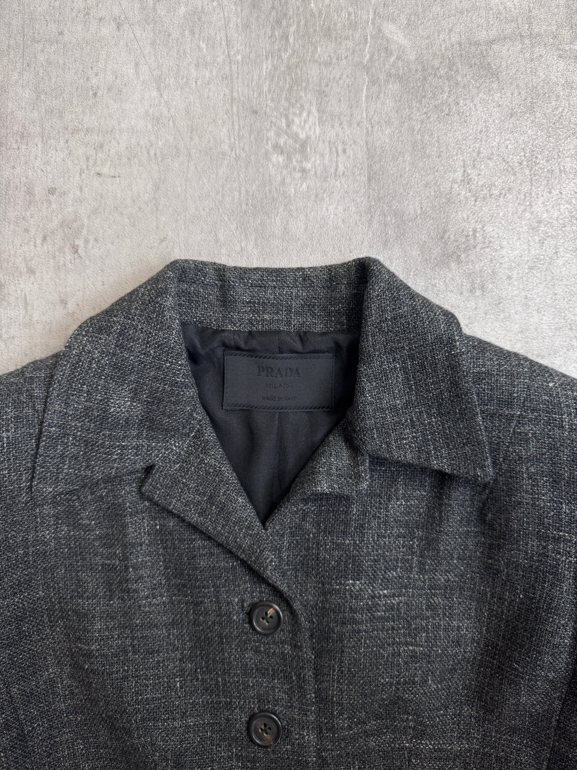 1999 Prada Milano Grey Linen Blend Cropped Woven Blazer