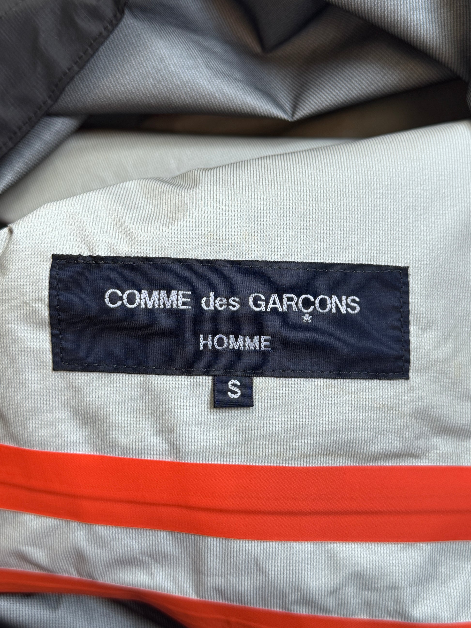 Stay protected in style with the 2017 CDG Homme Khaki Waterproof Cagoule, a sleek and functional piece from Comme des Garçons Homme. Crafted from high-quality waterproof fabric, this cagoule offers lightweight weather resistance without compromising on contemporary streetwear aesthetics.