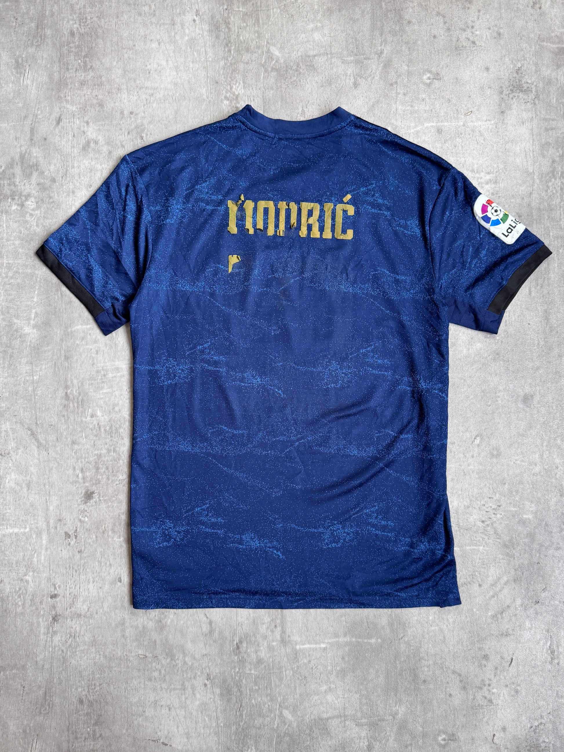 A striking Real Madrid 2019/20 away shirt by Adidas, celebrating the club’s championship-winning legacy. Designed in deep navy with subtle marble-inspired patterns, it features gold sponsor detailing, the FIFA World Champions 2018 badge, and the Fly Emirates logo. The three-stripe shoulder design and lightweight Climacool fabric ensure style and performance, both on and off the pitch.