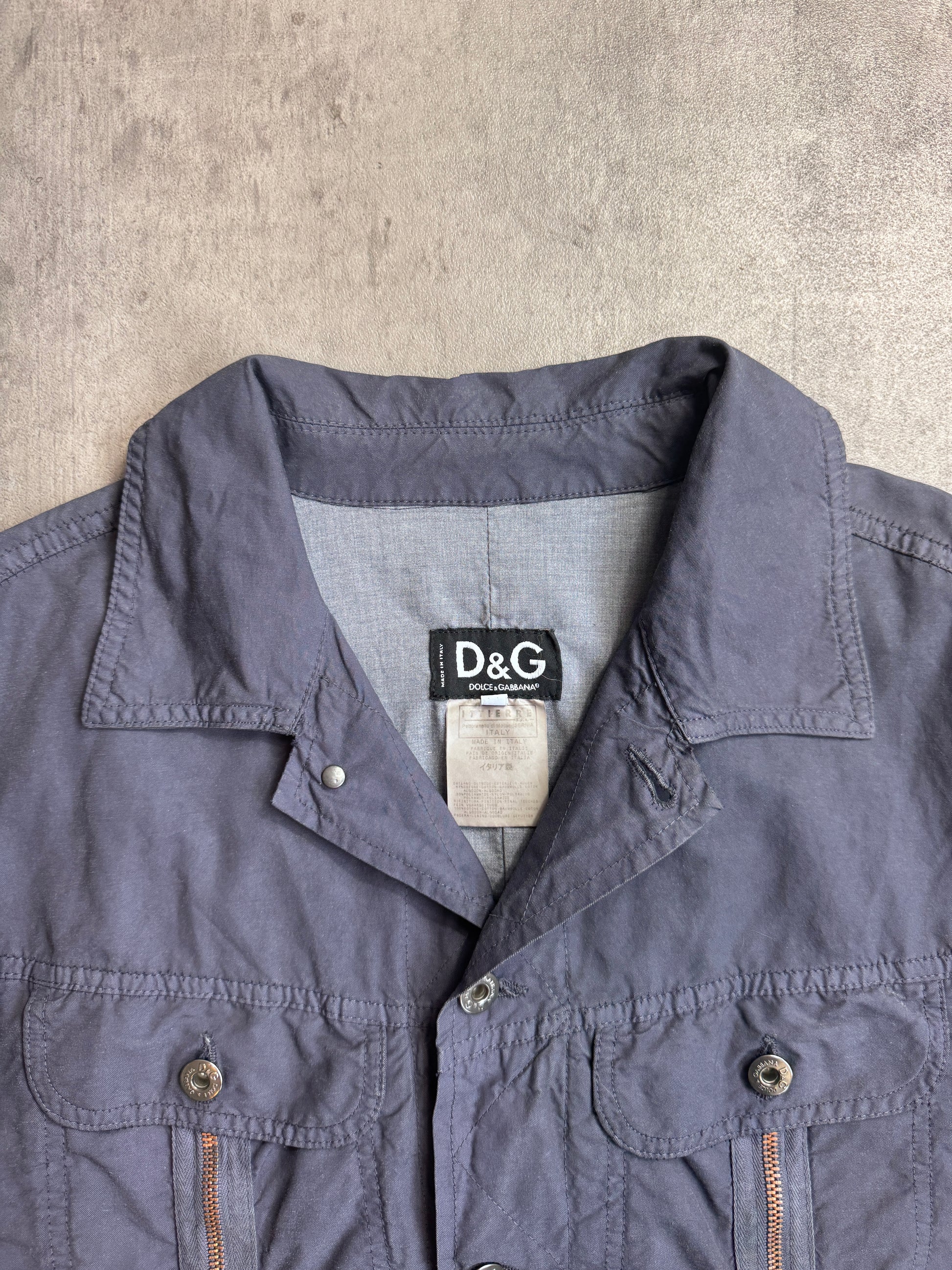 90s Dolce and Gabbana Multi Zip Cut Out Navy Wash Denim Jacket