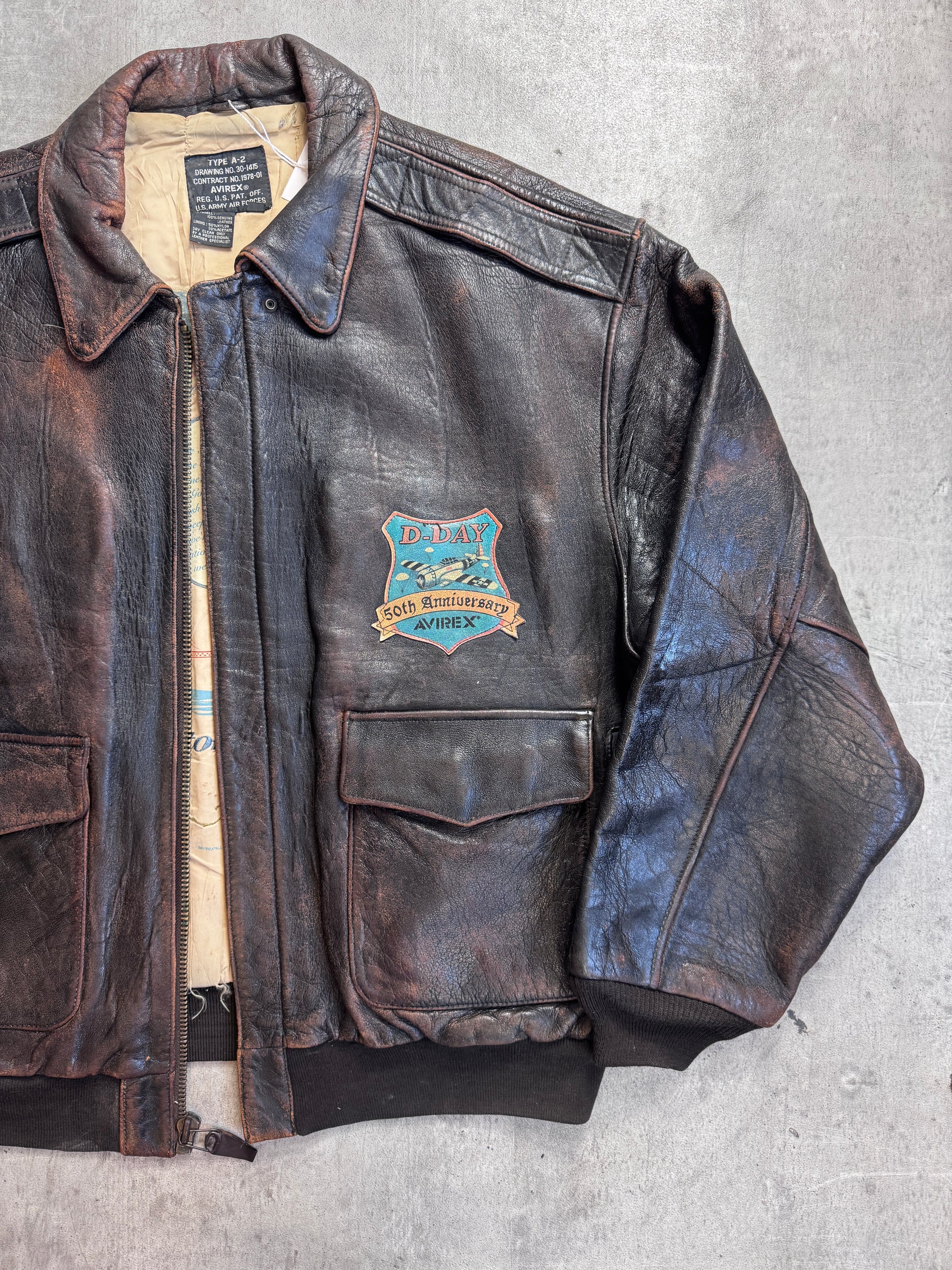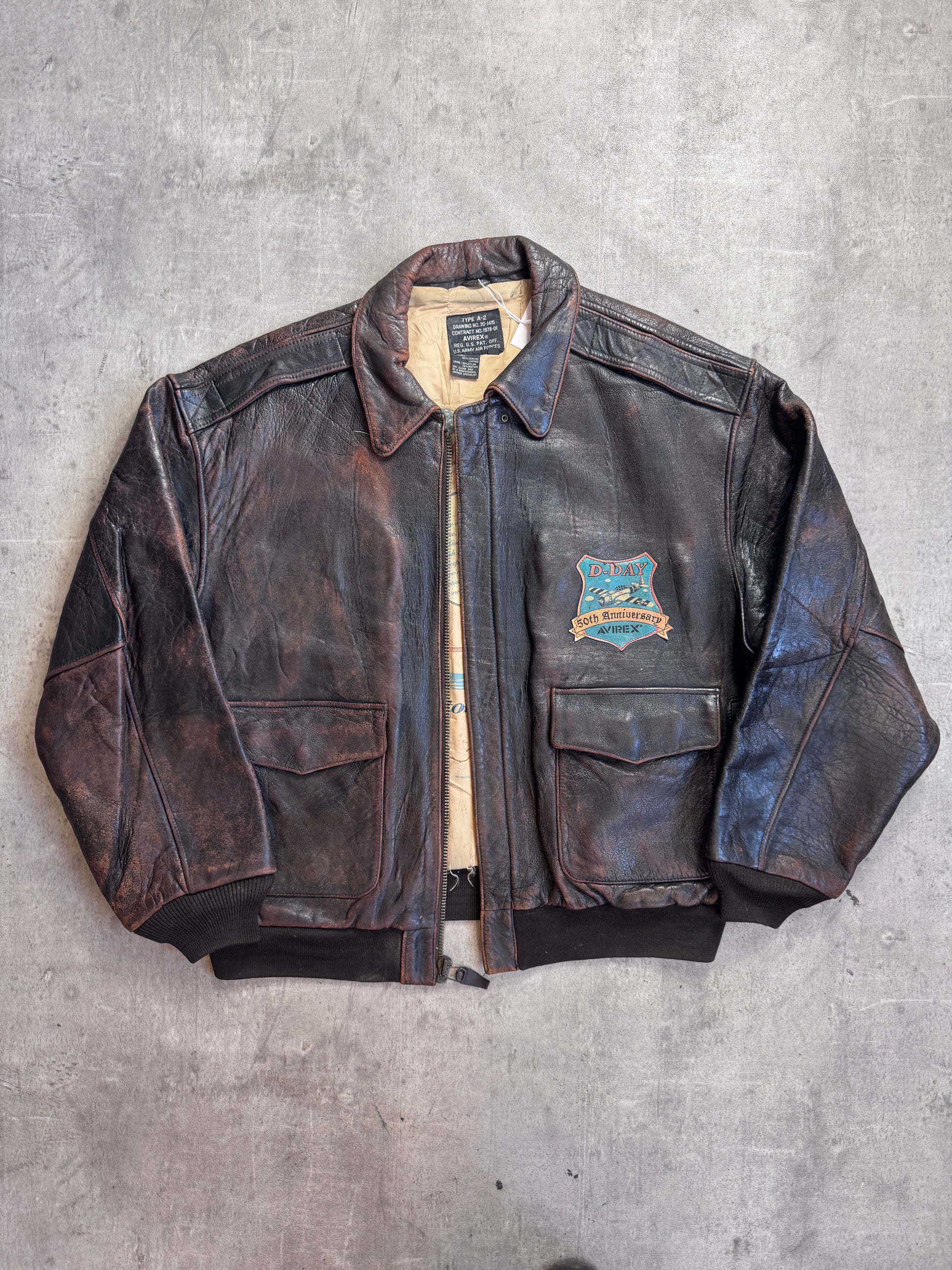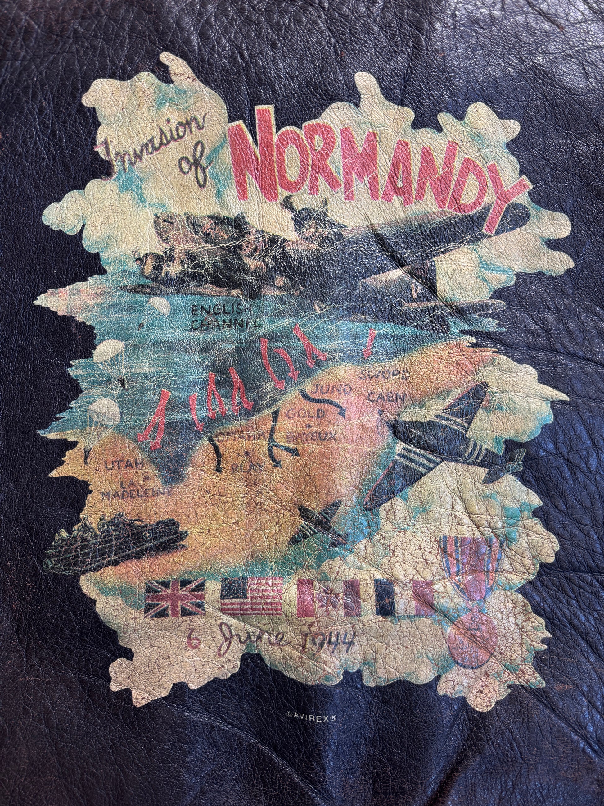 Avirex D-Day 50th Anivversary Brown Leather A2 Painted Bomber Jacket