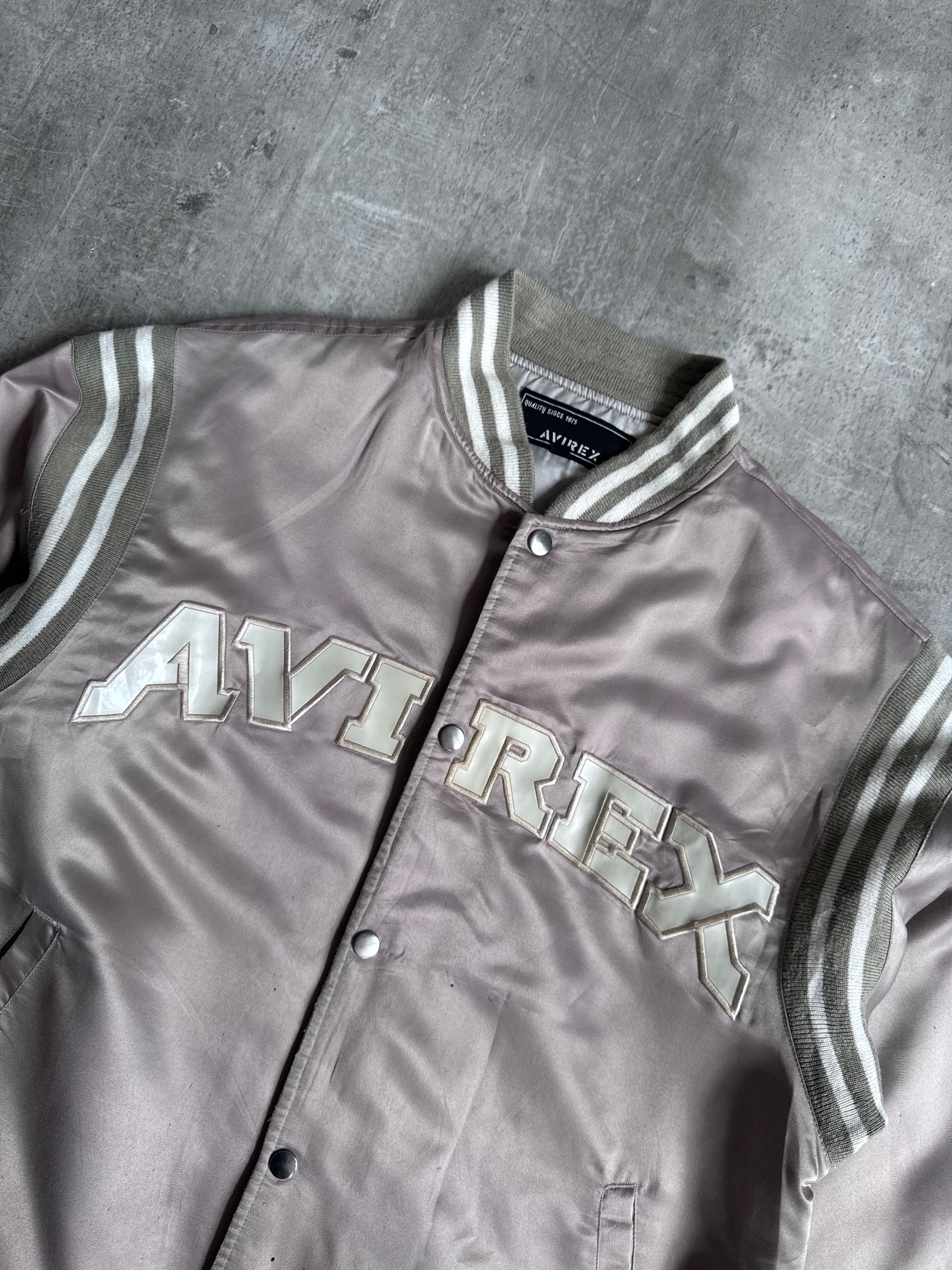 Avirex Light Brown Spellout Logo Varsity Bomber Jacket