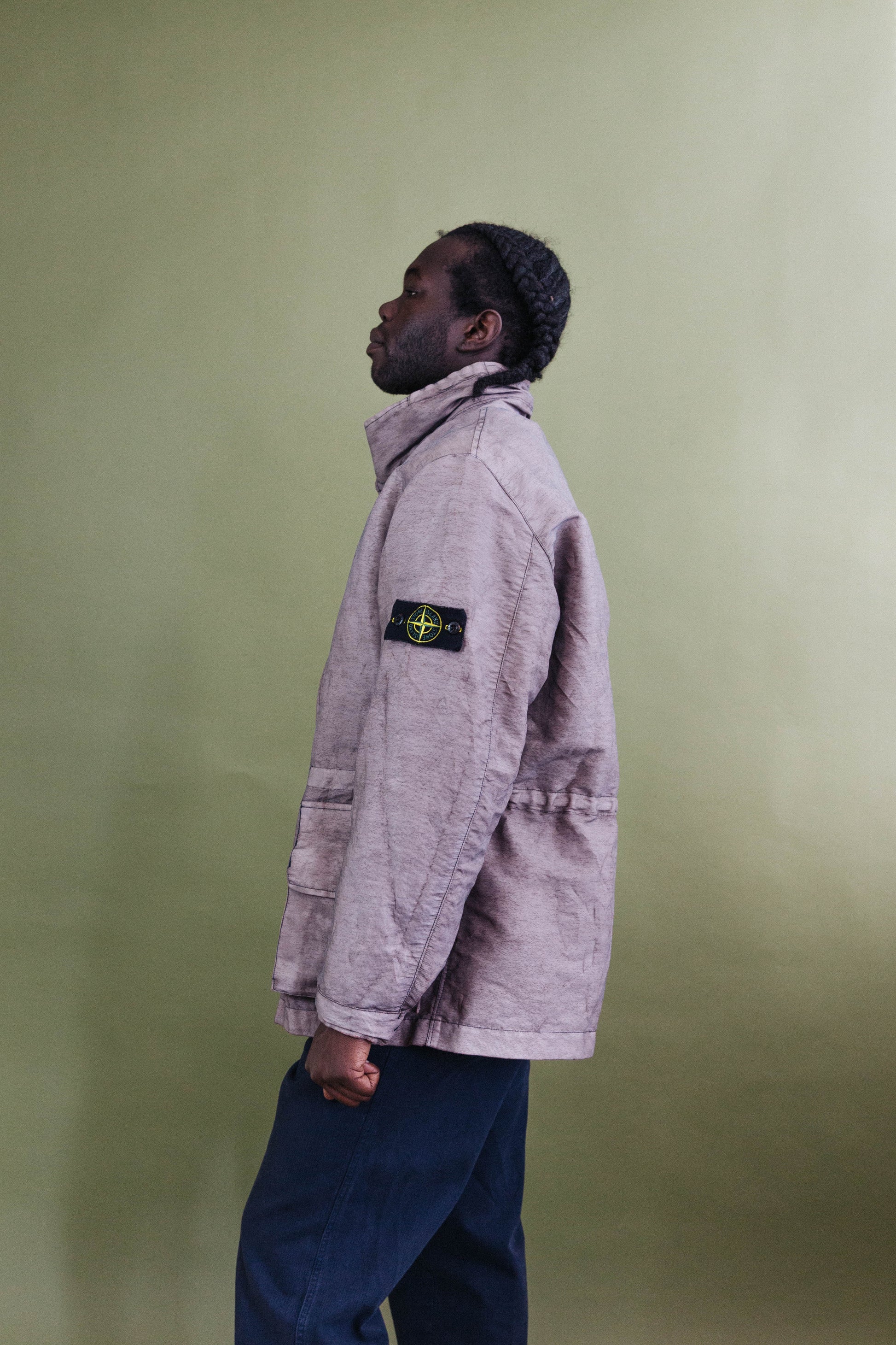 The design follows a classic chore jacket silhouette, featuring a button-front closure, utility patch pockets, and adjustable cuffs. The mesh overlay adds dimension while reflecting Stone Island’s ethos of blending military-inspired workwear with technical innovation. Finished with the removable compass badge at the sleeve, it remains an unmistakable piece of early-2000s Stone Island design.