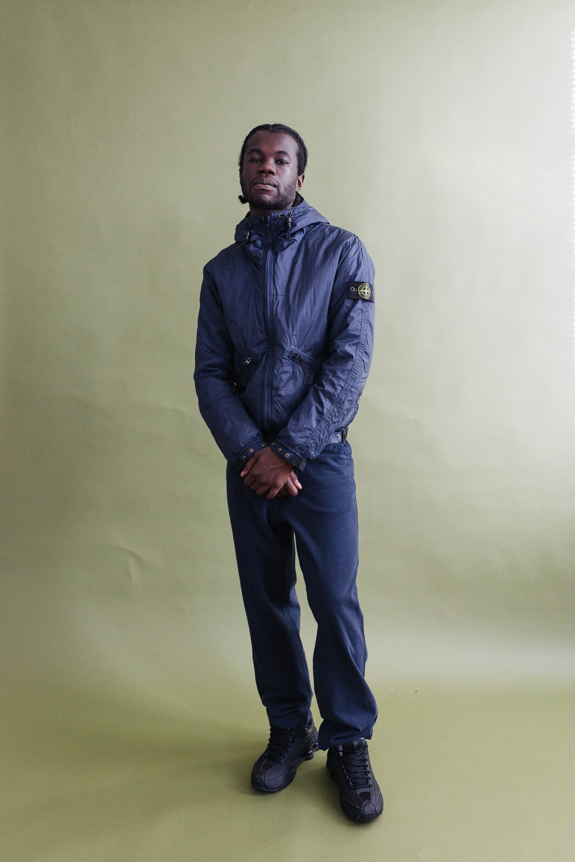A/W 2001 Stone Island Navy Grid Hooded Two-Pocket Jacket