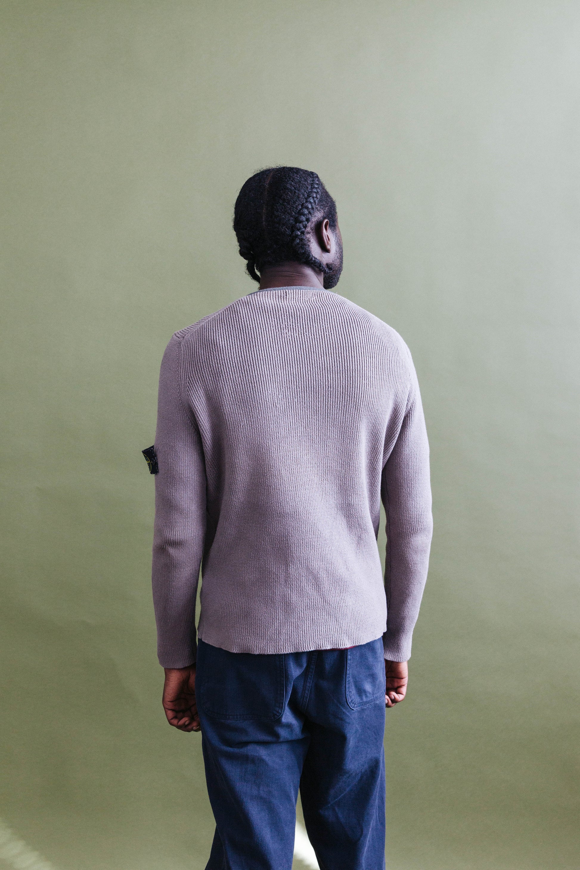 From the Autumn/Winter 2006 collection, this Stone Island knit sweater is crafted in a warm light brown wool blend, designed with a distinctive ribbed knit texture that enhances both insulation and durability. The garment has been finished with Stone Island’s signature garment-dyeing process, giving subtle tonal depth and variation unique to each piece. The design features a classic crew neckline, ribbed cuffs and hem, and the removable Stone Island compass badge at the sleeve. Mid-weight and versatile, it reflects the brand’s mid-2000s exploration of knitwear as functional sportswear.