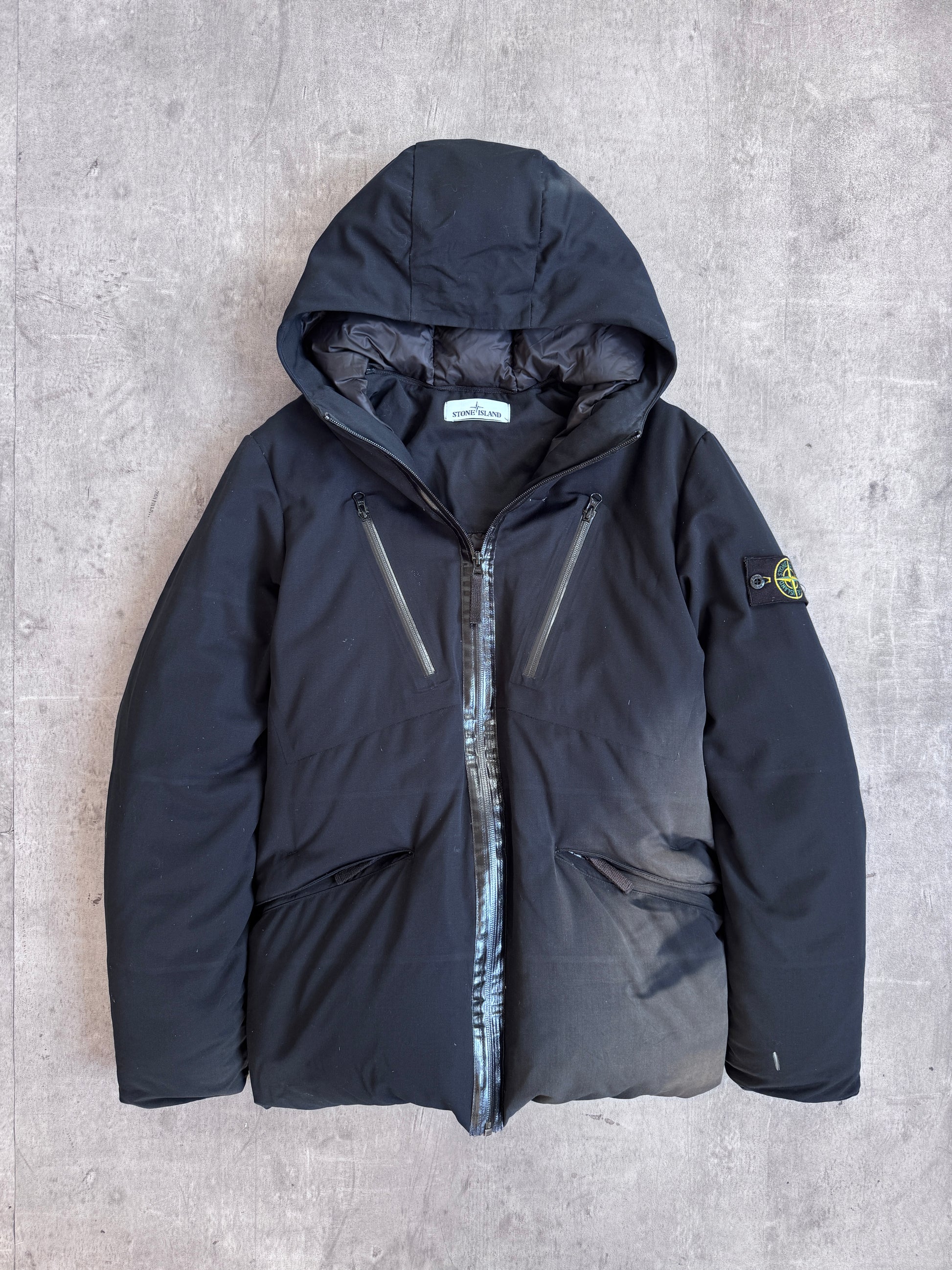 A/W 2015 Stone Island Black Wool Leather Detailed Down Feather Puffer (Sold As Seen)