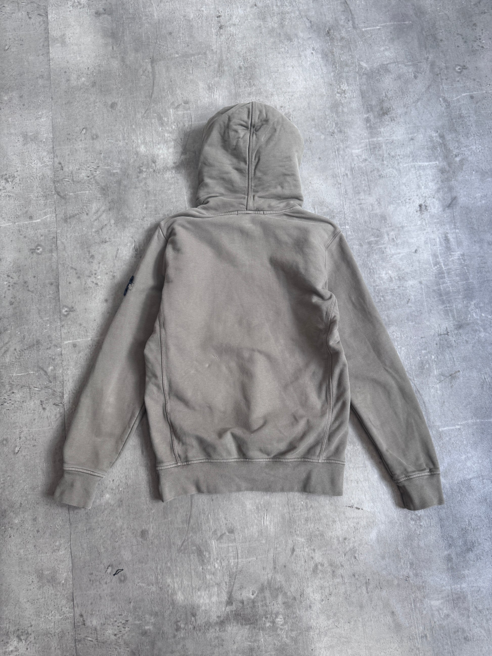 From the Autumn/Winter 2018 collection, this Stone Island Khaki Graphic Hoodie embodies the brand’s distinct blend of utilitarian function and minimalist design. Crafted from premium garment-dyed cotton, the hoodie features a printed Stone Island “Headquarters” blueprint graphic across the chest, giving a nod to the brand’s technical heritage and industrial aesthetic. The classic detachable compass patch sits on the left sleeve, a signature detail synonymous with Stone Island.