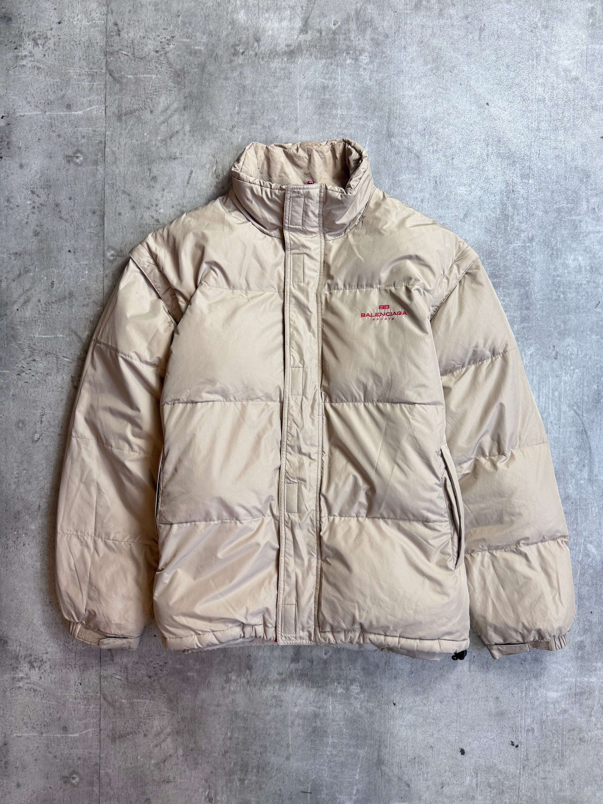 Make a bold statement this season with the Balenciaga Sports Beige Puffer Jacket, a standout piece that merges luxury craftsmanship with innovative design. Featuring removable arms for versatile styling, this puffer allows you to transition seamlessly between a full jacket and a stylish vest. Crafted with premium materials, the jacket boasts red stripe detailing for a sporty, modern edge, while the beige colorway offers a neutral yet sophisticated palette.