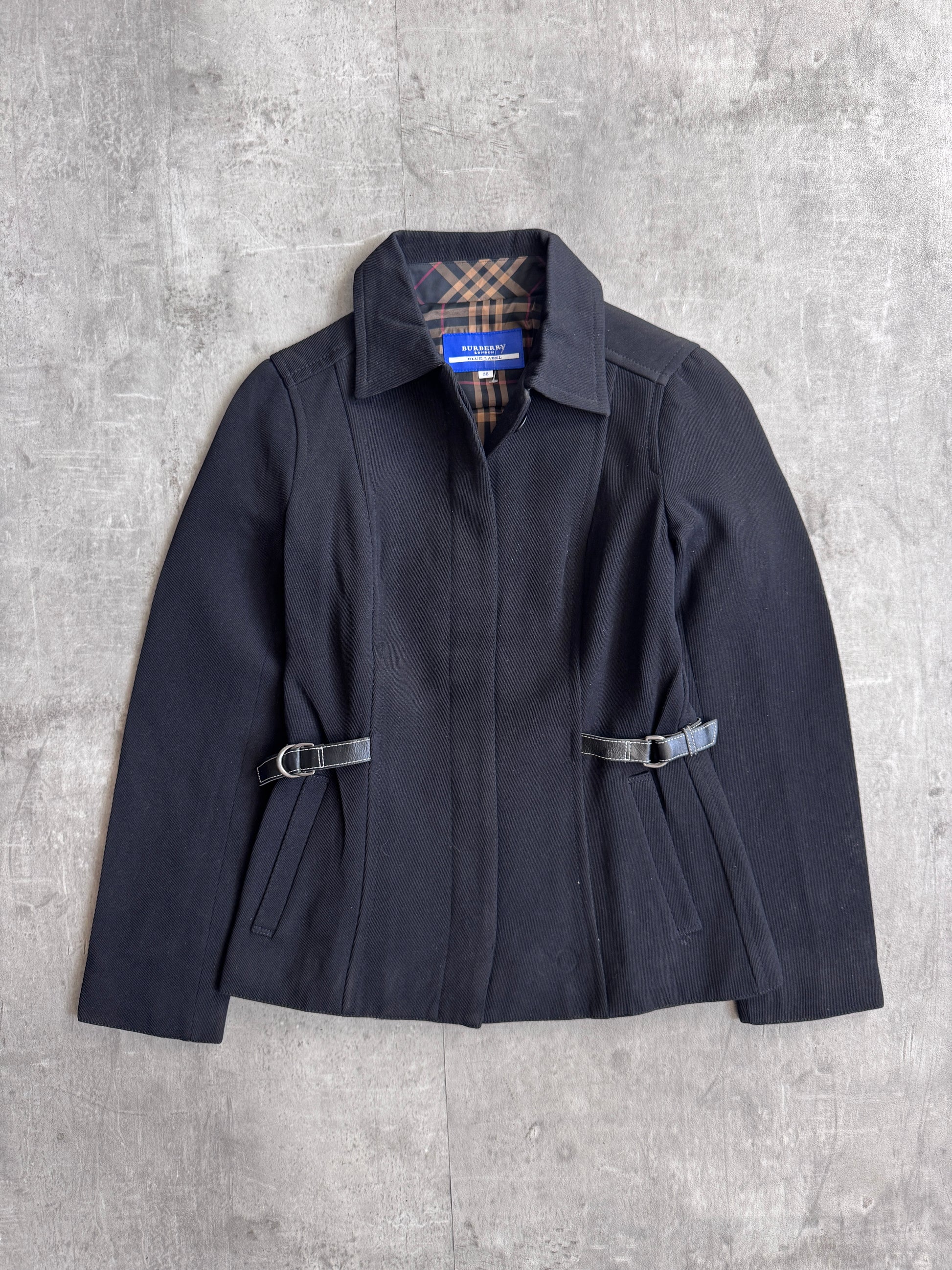 Burberry Blue Label Leather Buckle Detail Fitted Blouson