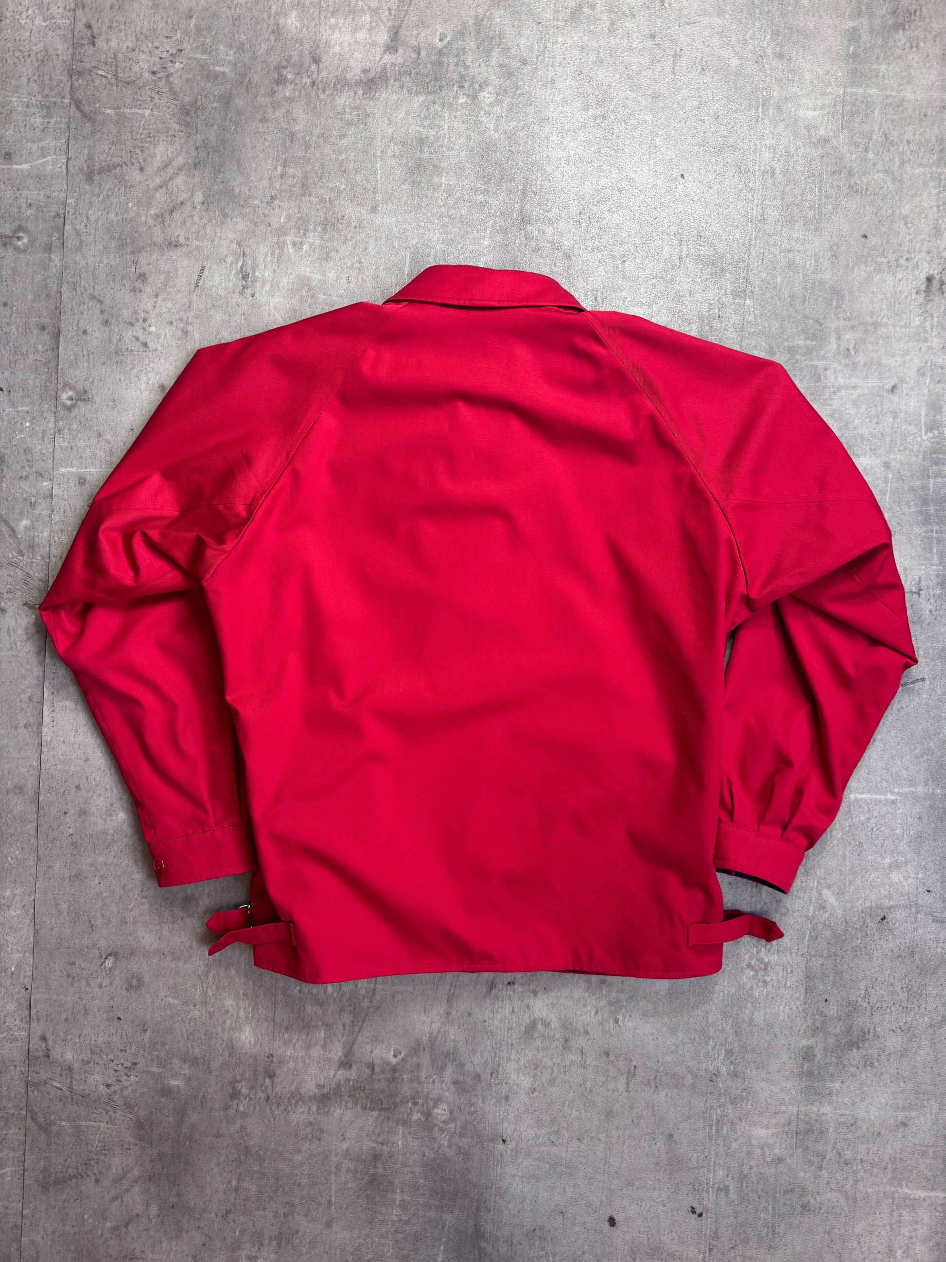 A timeless British outerwear staple, this Burberry Harrington jacket comes in a bold classic red colourway and is finished with a rare Tattershall navy check lining. Clean, structured, and endlessly wearable, it’s the perfect lightweight jacket for everyday rotation — combining heritage Burberry craftsmanship with that iconic Harrington silhouette.
