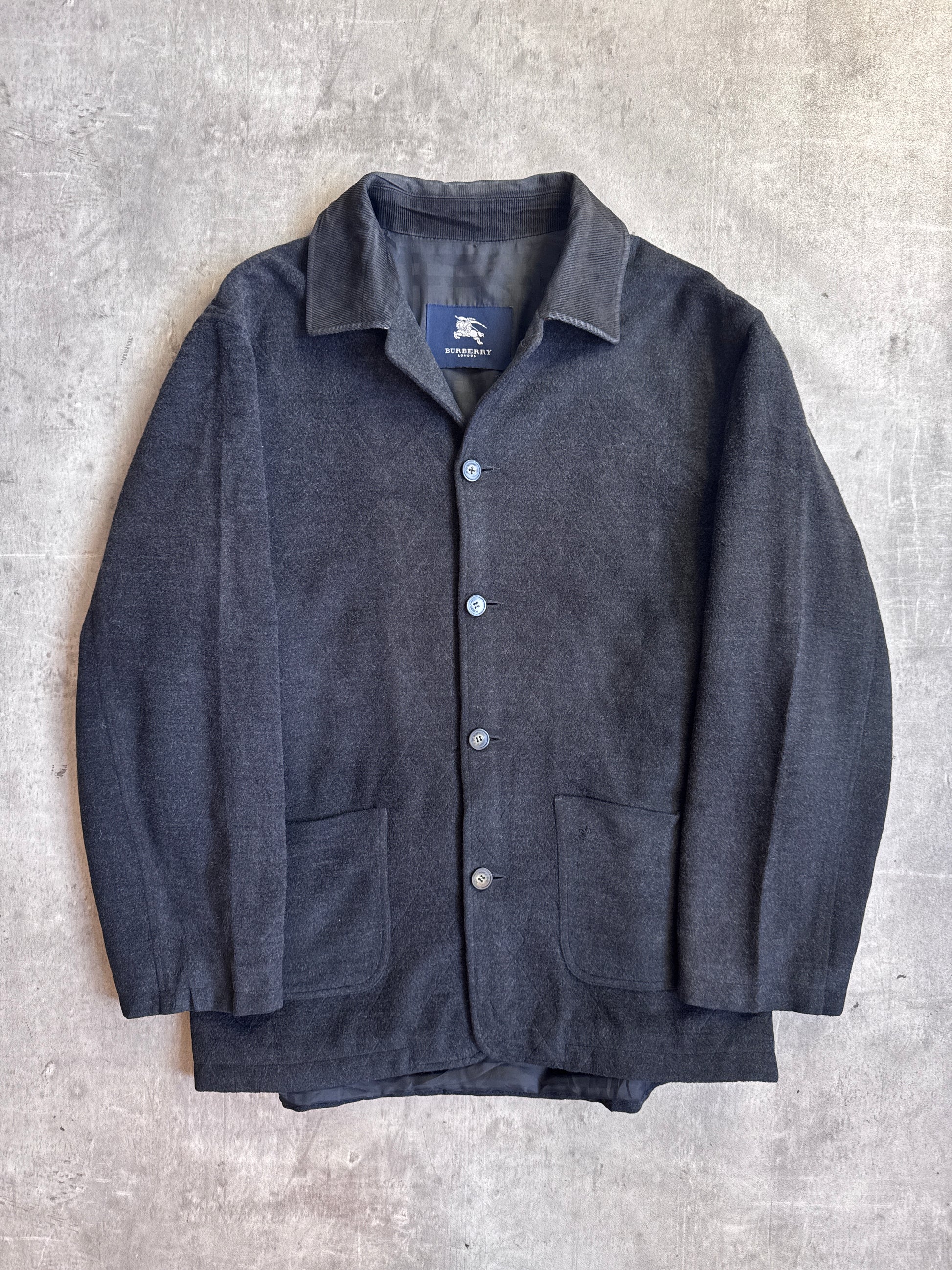 Burberry Grey Lana Wool Cord Collar Button Chore Jacket