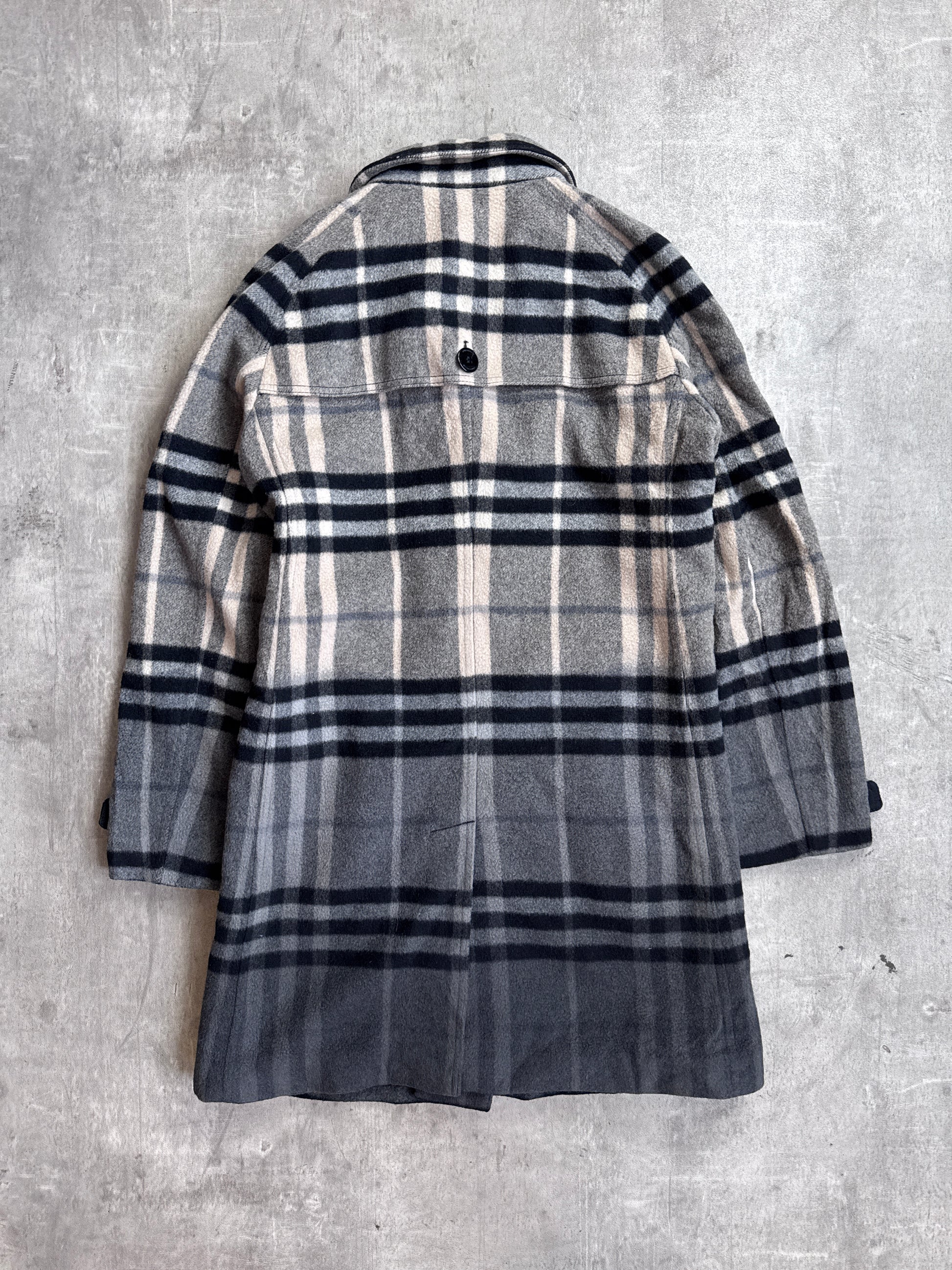 refined take on a Burberry classic, this mid-length trench coat combines timeless tailoring with the brand’s iconic Nova Check lining and a versatile grey wool outer. Designed to bridge classic British heritage and modern wardrobe sensibilities, the wool construction adds warmth and structure, while the mid-length silhouette keeps it polished and effortlessly wearable.