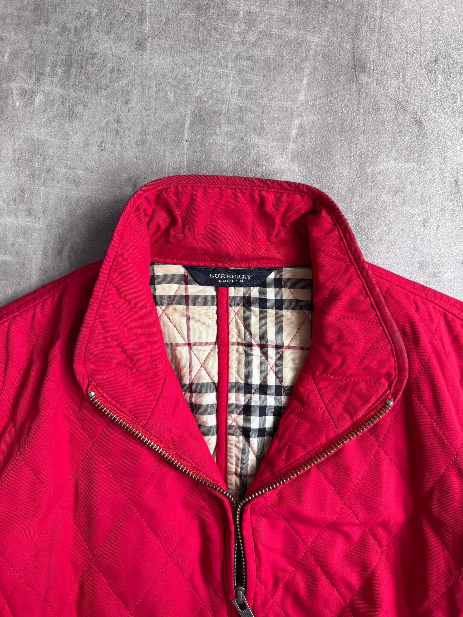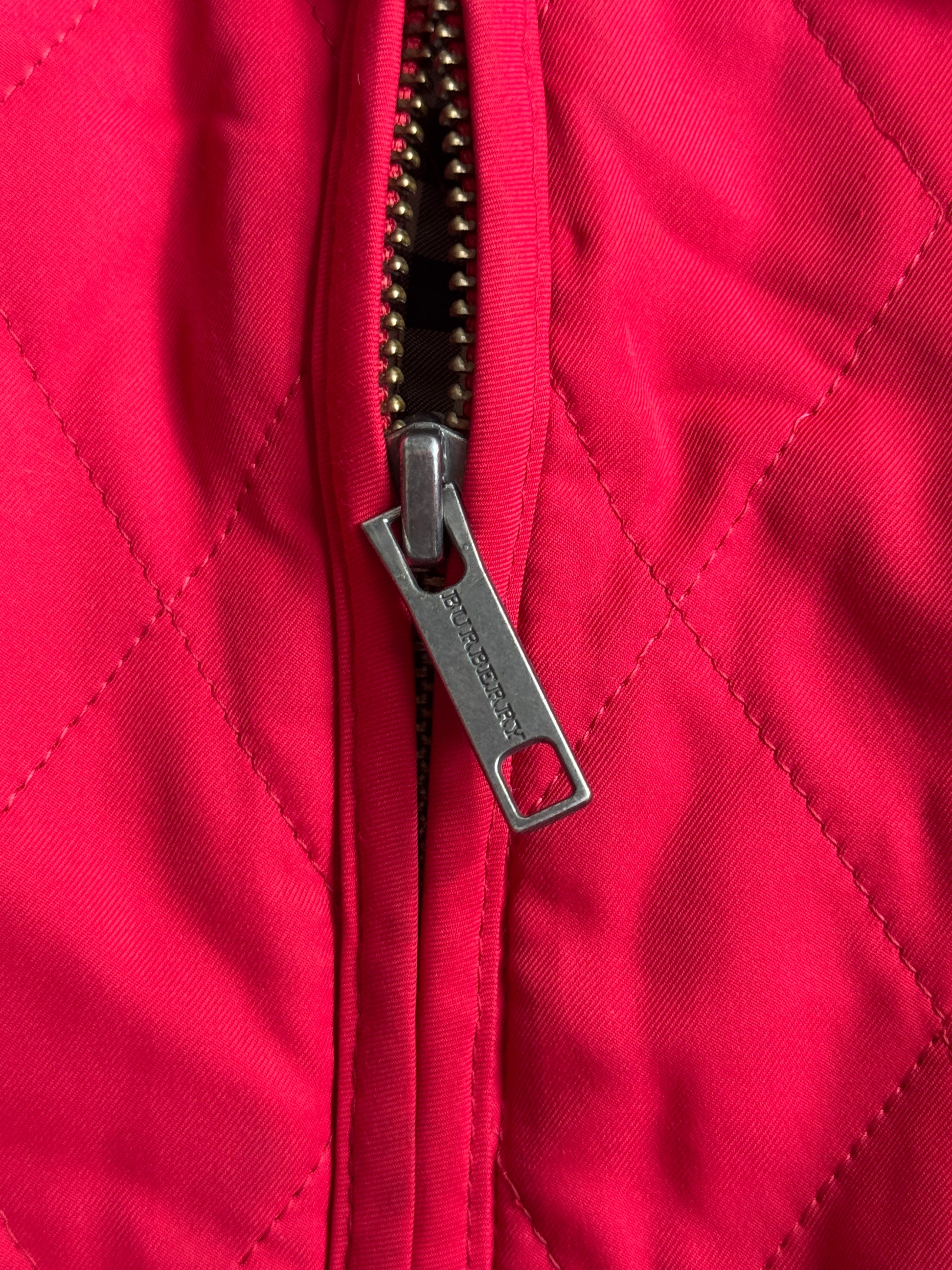 Bright, refined, and unmistakably Burberry, this Burberry Red Quilted Overcoat combines classic British outerwear design with a bold, modern twist. Crafted from lightweight, diamond-quilted fabric, the coat features a belted waist for a flattering silhouette and is lined with Burberry’s iconic Nova Check pattern for a heritage touch. The vivid red tone offers a contemporary statement while maintaining the timeless elegance synonymous with Burberry’s craftsmanship, a perfect piece for both transitional layering and elevated everyday wear.