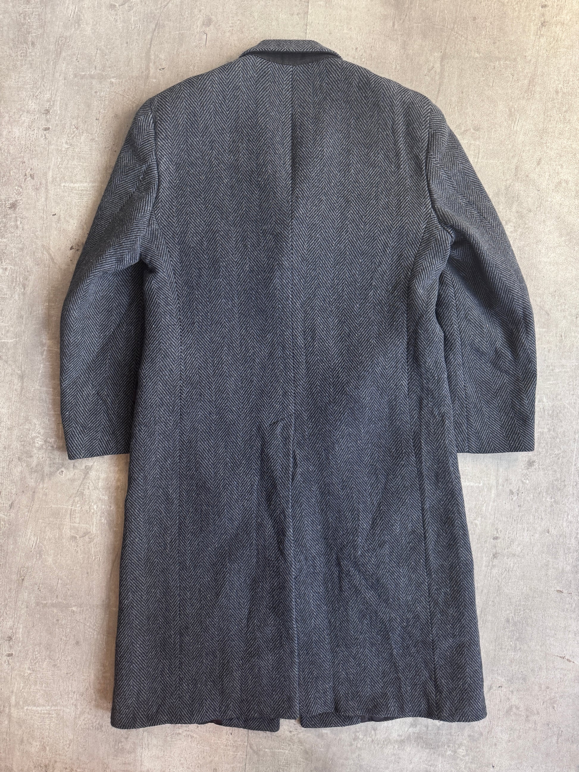 Christian Dior Monsieur Sport Pure Wool Double Breasted Grey Herringbone Tweed Coat
