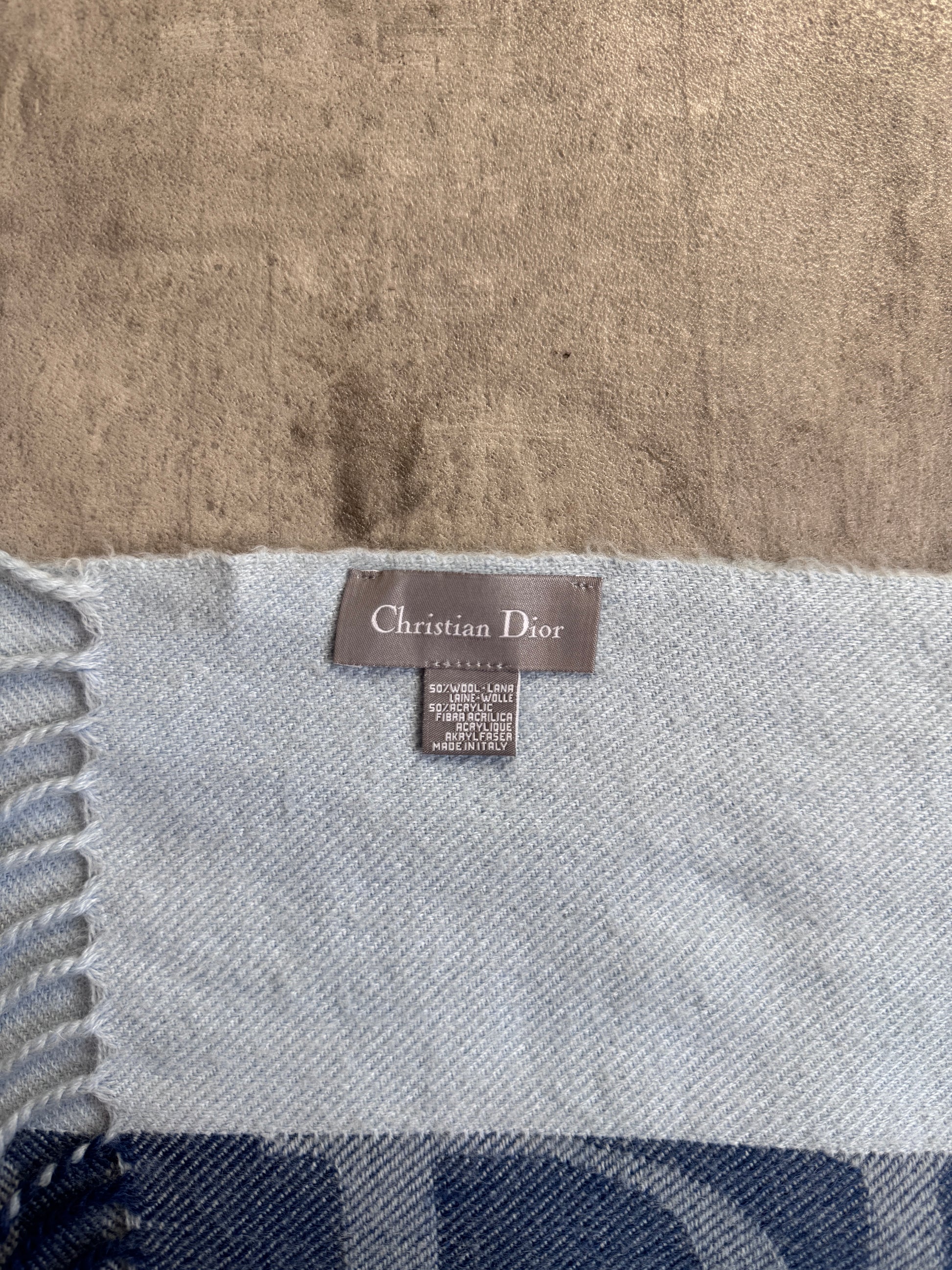 Christian Dior Pale Blue Colour Block Logo Wool Blend Scarf