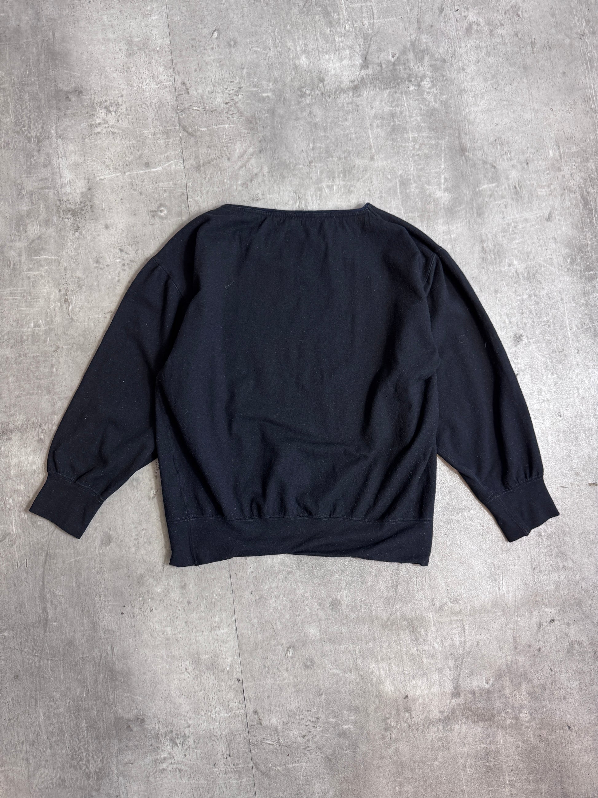 Featuring a classic crew neck, ribbed cuffs, and hem, it embodies Comme Des Garçons’ signature understated aesthetic. Its versatile black tone makes it a wardrobe staple, perfect for casual, smart-casual, or elevated streetwear looks.