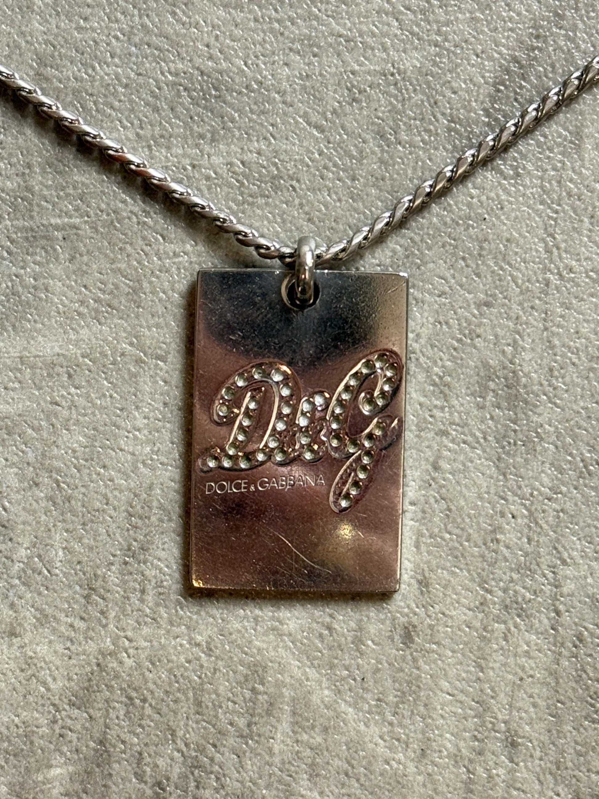 A bold accessory from D&G (Dolce & Gabbana) that brings instant statement energy to any outfit. Combining sleek metalwork with prominent D&G logo detailing, this dog tag-style necklace is perfect for streetwear dressing, layered accessories, or a polished casual look.