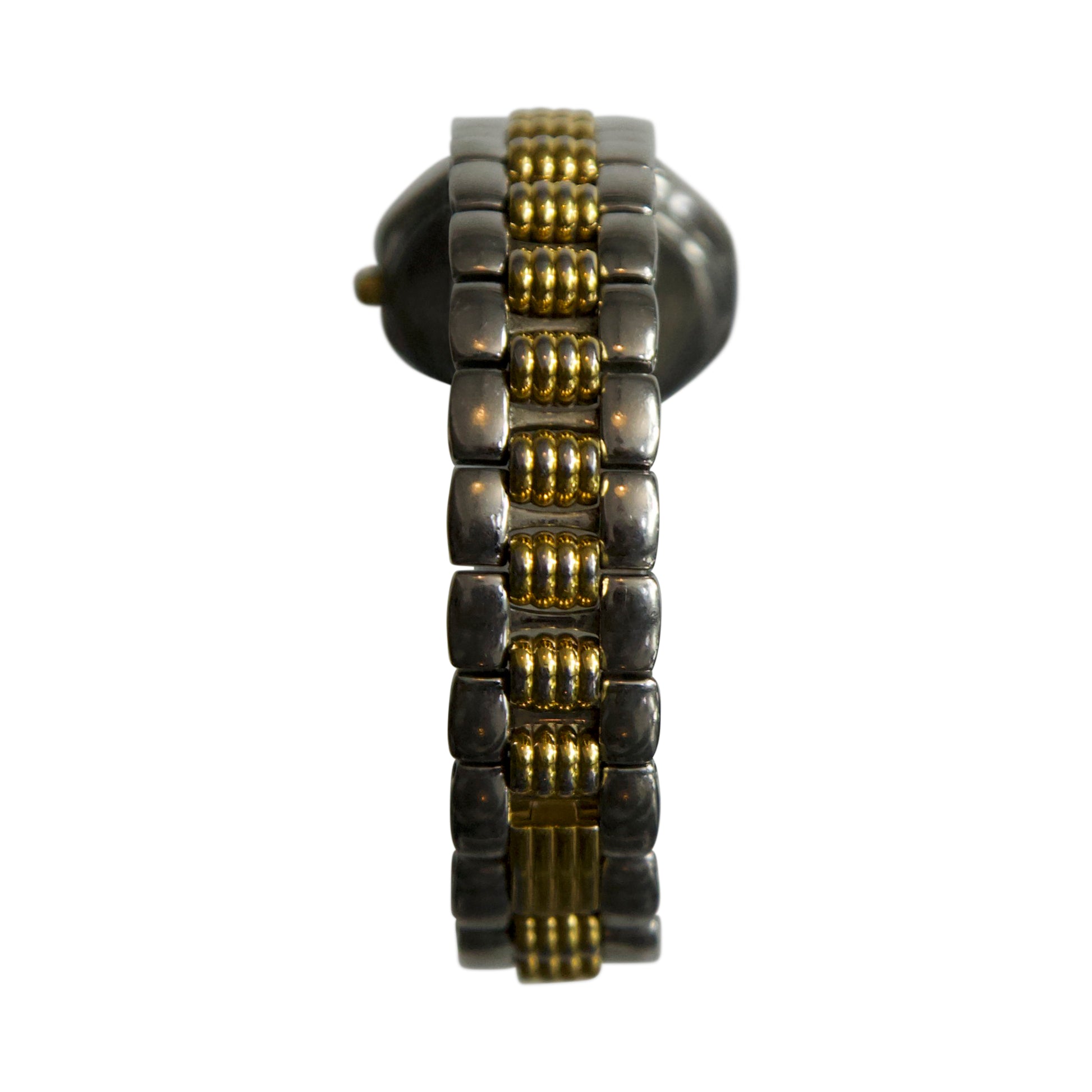 A striking example of late-20th-century elegance, this Christian Dior 48.203 Quartz Watch showcases the French fashion house’s seamless blend of luxury design and precision timekeeping. Featuring a distinctive two-tone bracelet and a refined octagonal case, the piece exudes timeless sophistication, emblematic of Dior’s enduring aesthetic. The warm gold and silver palette complements the minimalist champagne-and-charcoal dial, detailed with Roman numeral markers and a discreet date window, the perfect balance of form and function.