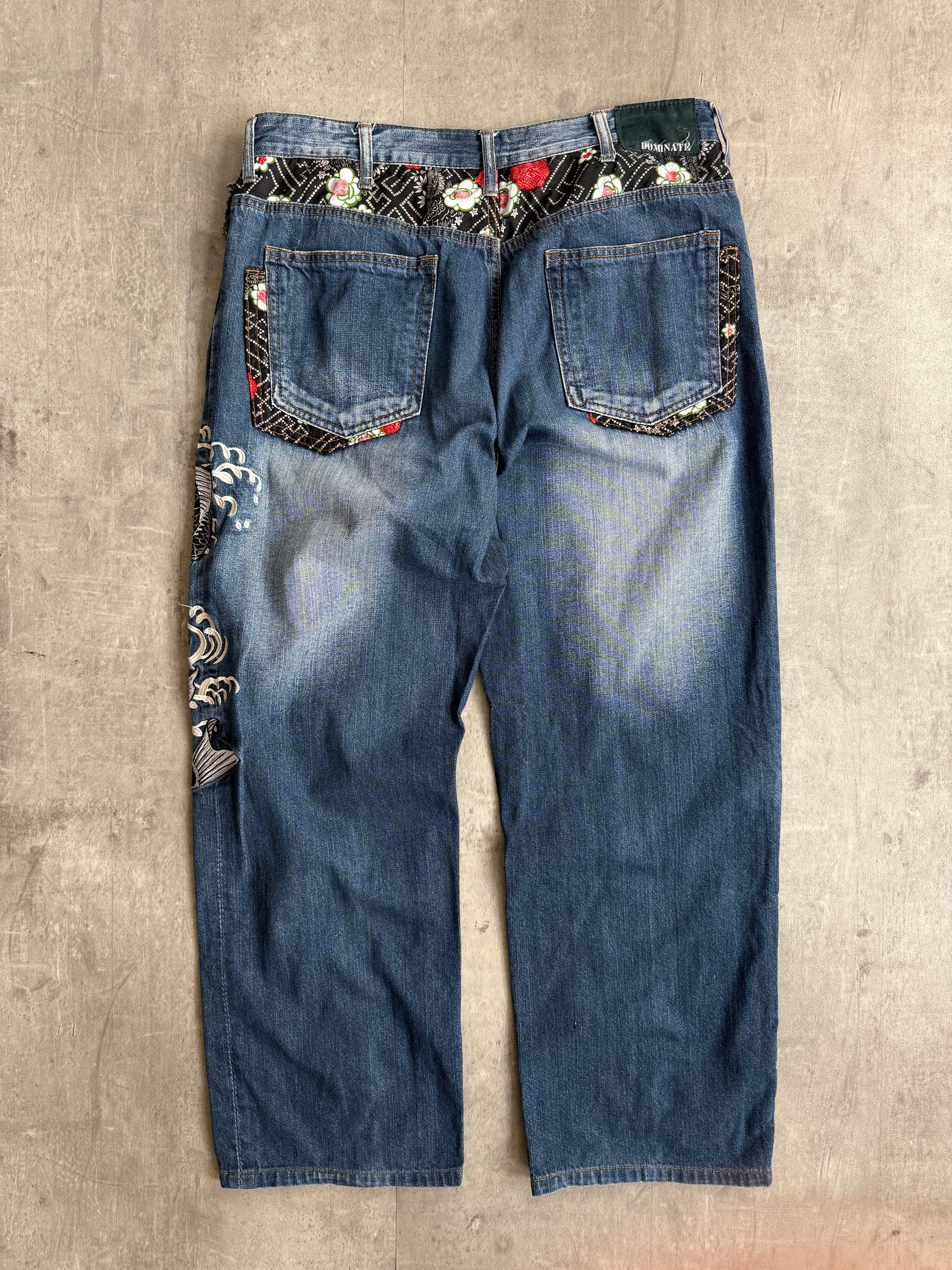 Dominate Japanese Koi Fish Embroidered Denim Jeans