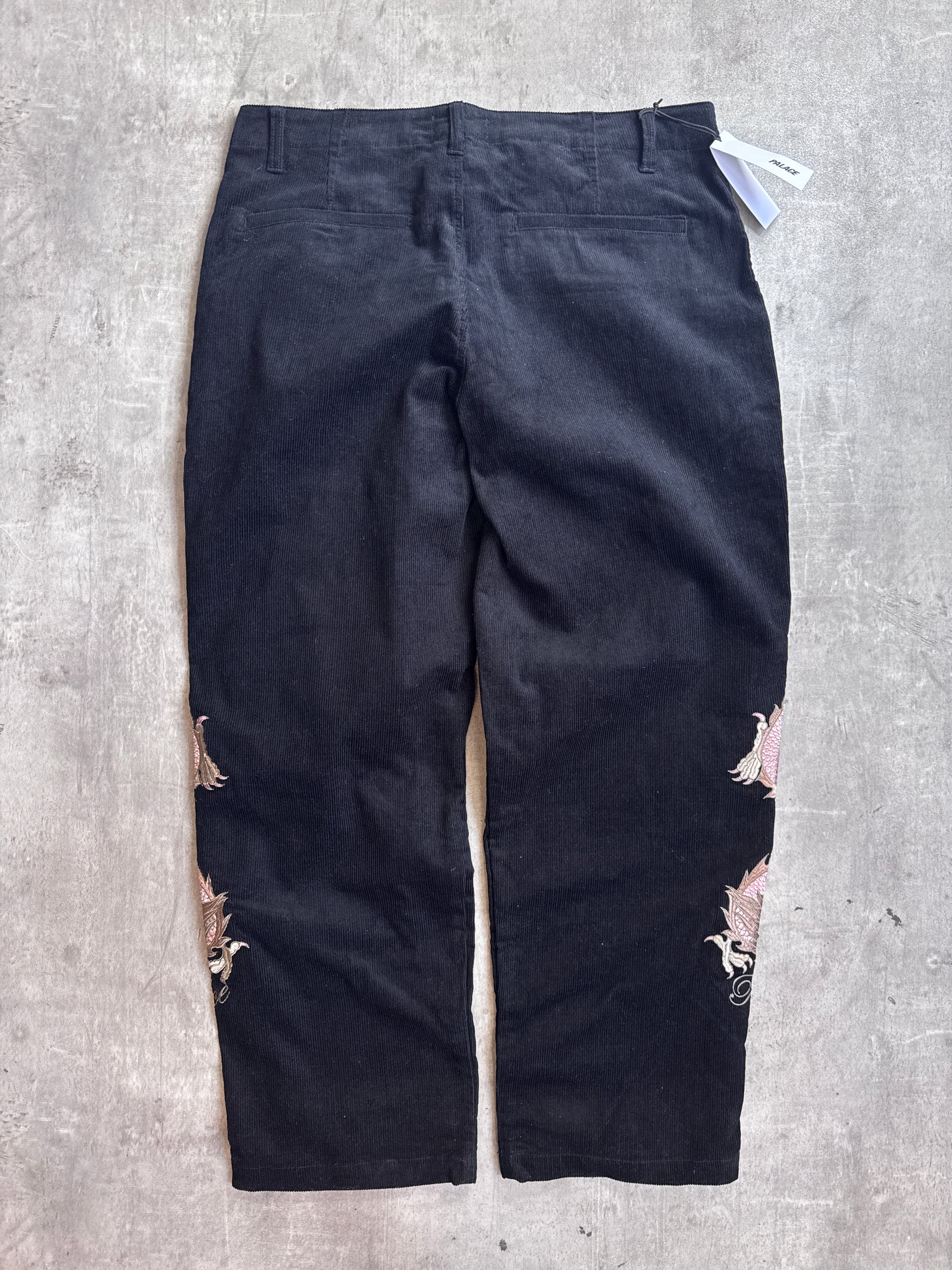 F/W 2022 Palace Embroidered Double Dragon Tour Black Corduroy Wide Leg Trousers