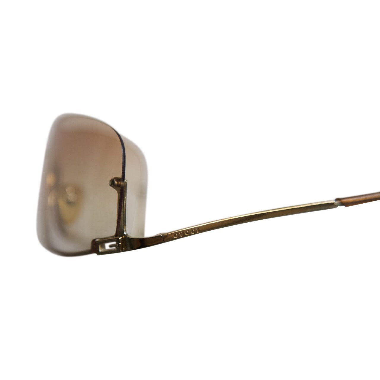 Sunglasses are a true statement piece from the brand’s iconic early 2000s era. Featuring a striking wrap-around design and signature upside-down Gucci logo detailing on the temples, these sunglasses capture the perfect balance between avant-garde styling and luxury craftsmanship. The sleek black frame and dark gradient lenses exude confidence and individuality, making them a standout accessory for any fashion-forward wardrobe.