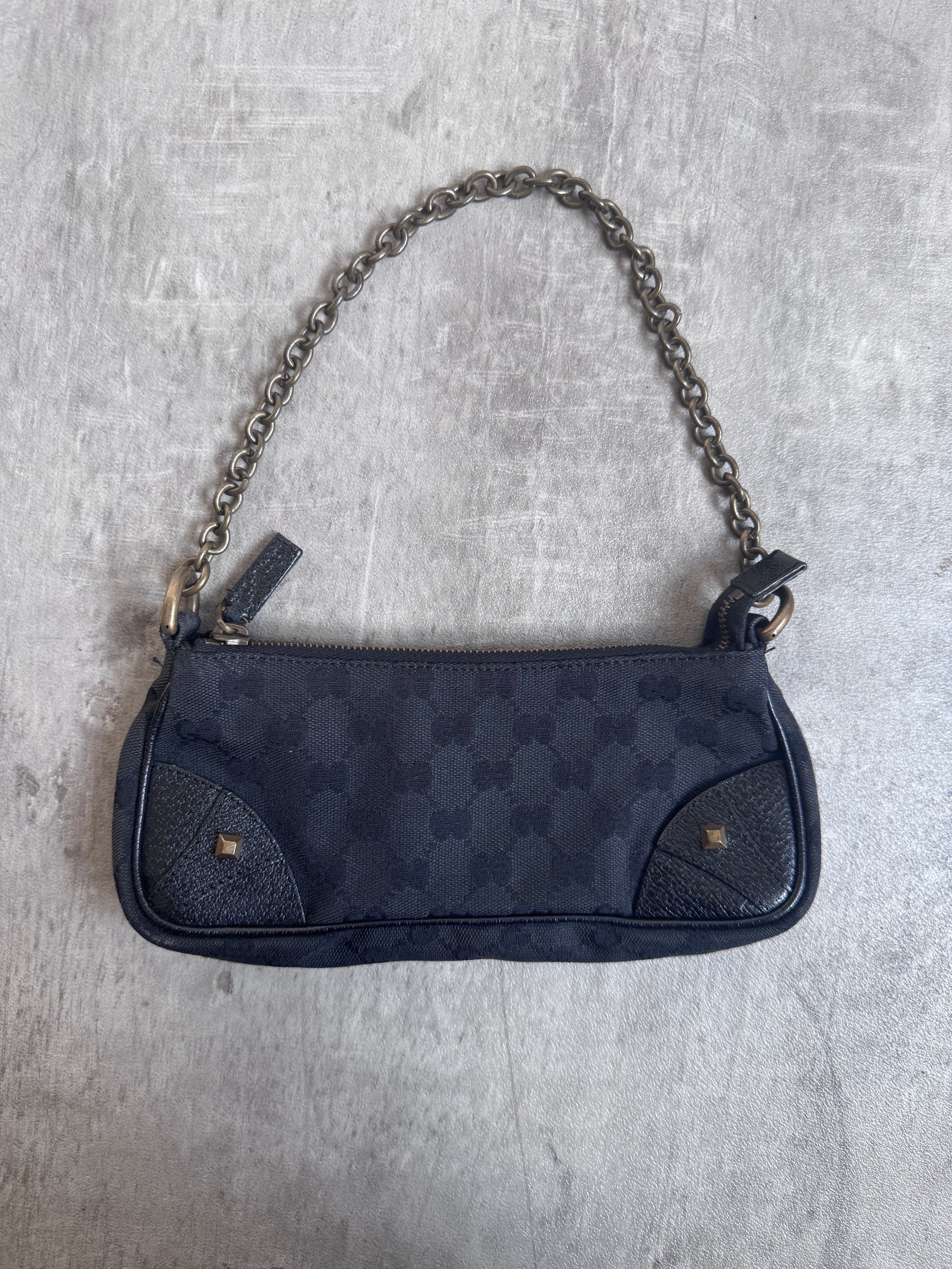 This Gucci Horsebit Chain Monogram Shoulder Bag is a sleek and timeless accessory crafted from the brand’s signature GG monogram canvas. The bag features elegant black leather trim with textured panels, accented by antique gold-tone hardware and a chunky chain handle for a refined yet edgy finish. Compact yet practical, this piece captures the essence of Gucci’s modern-luxury aesthetic, effortlessly combining everyday functionality with elevated Italian craftsmanship.