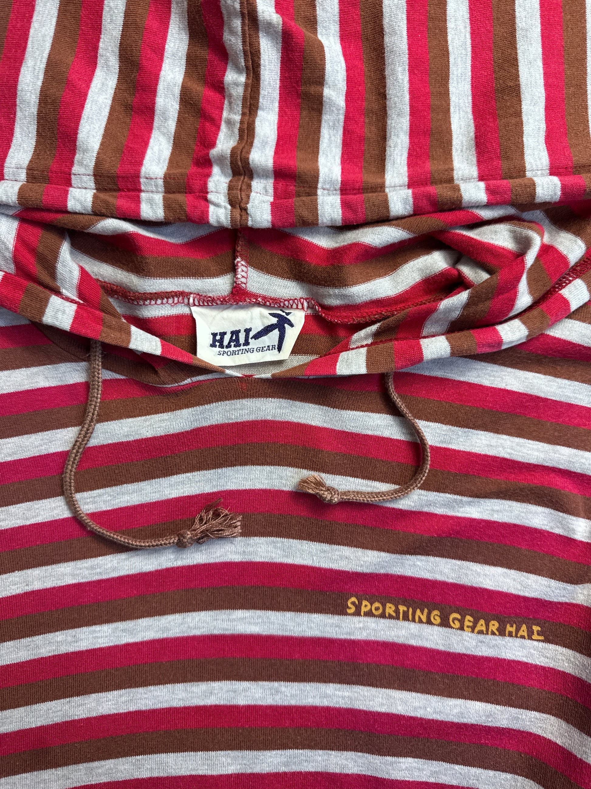 A rare and nostalgic piece from Hai Sporting Gear, this striped hoodie captures that perfect blend of late-90s/early-2000s sporty styling with a refined, design-led edge. Known for its clean cuts and elevated casualwear, Hai delivers a hoodie that feels more considered than standard streetwear — with bold striping that gives it instant character while remaining easy to wear.
