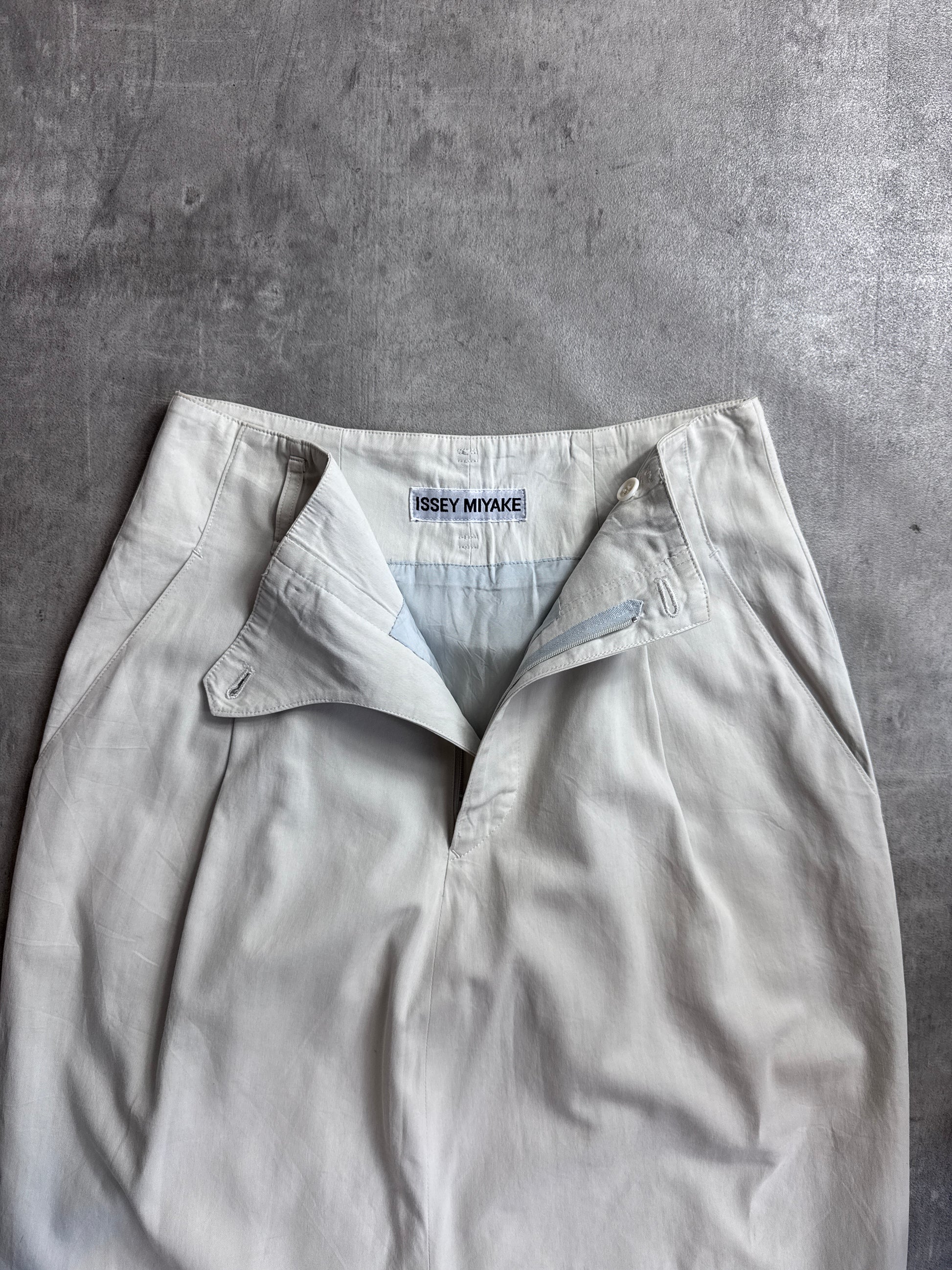 The neutral cream tone makes it endlessly versatile — perfect styled with knitwear and boots, crisp shirting, or paired with technical outerwear for that classic Miyake contrast of soft and utilitarian.