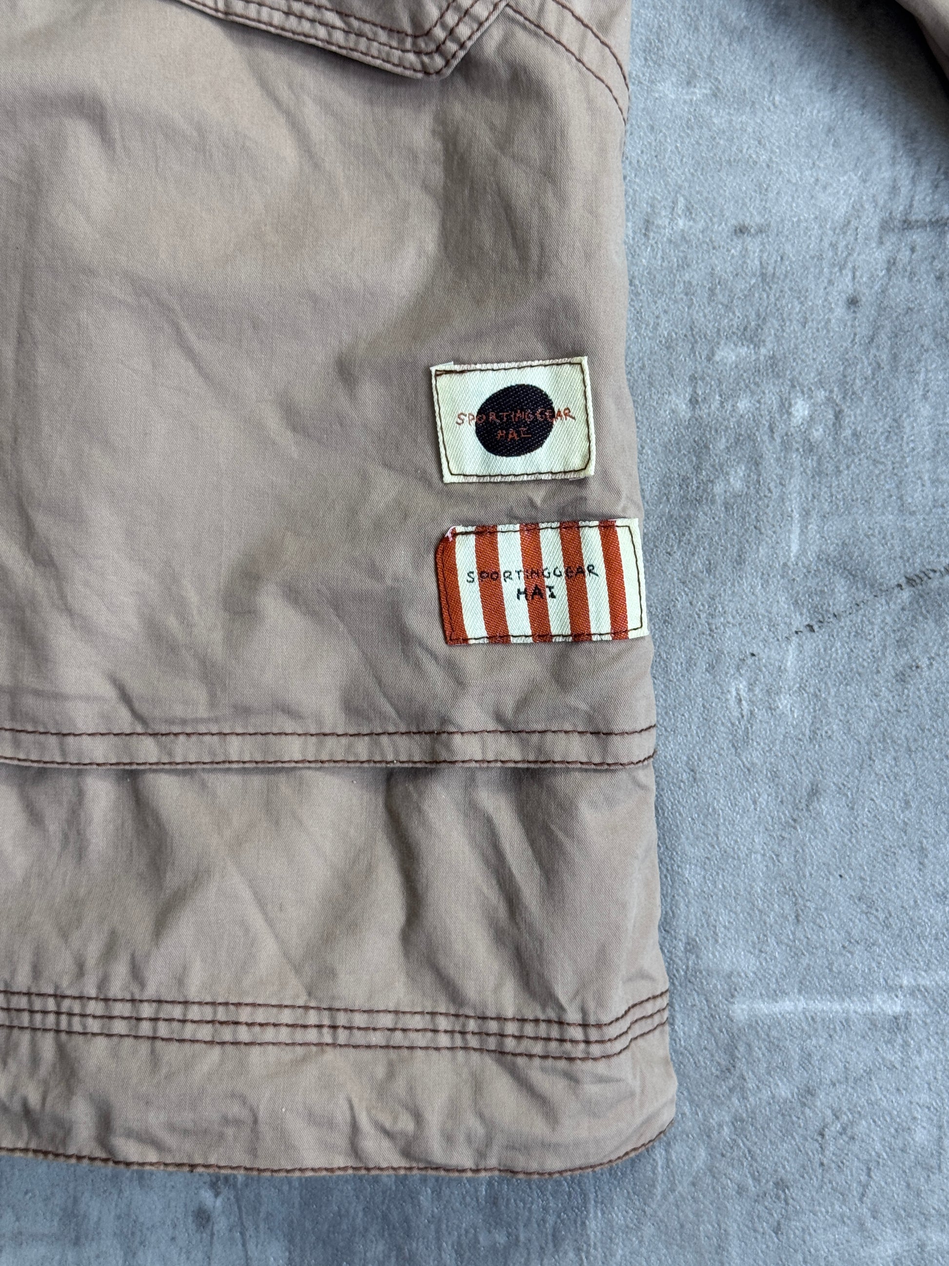 The earthy brown tone and functional design make it versatile for layering, while the Hai Sporting Gear branding reflects Issey Miyake’s experimental approach to high-fashion streetwear. Ideal for collectors, Japanese designer enthusiasts, and anyone seeking unique, statement outerwear.