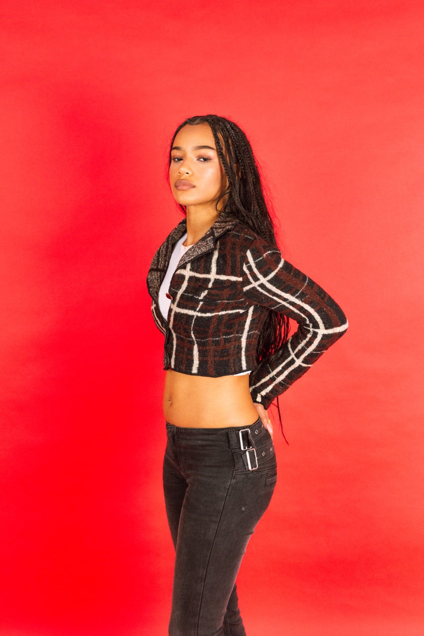 Jean Paul Gaultier Maille Mohair Wool Cropped Check Blazer