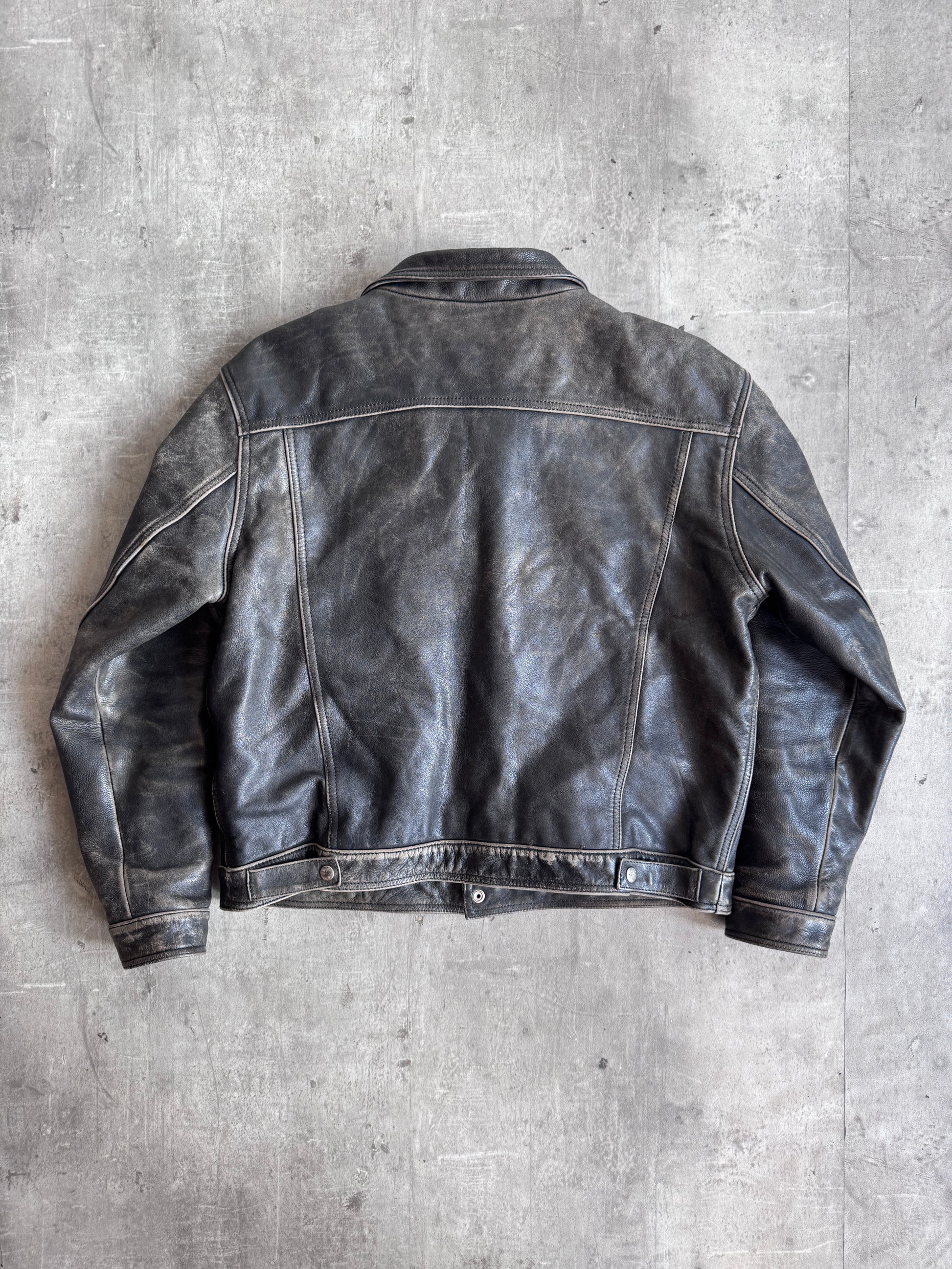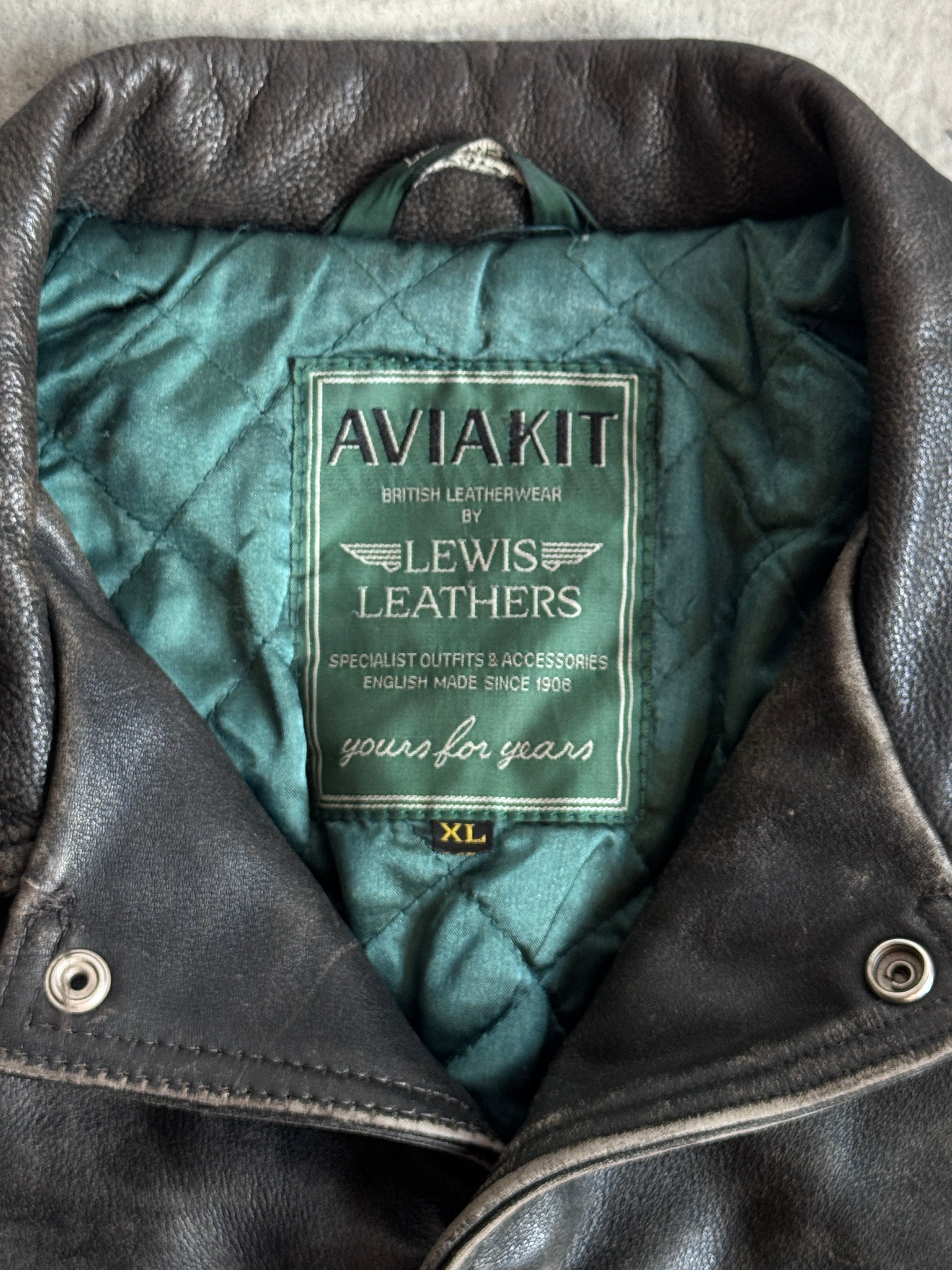 A true icon of British motorcycle heritage, this Lewis Leathers Aviakit trucker jacket is crafted in distressed brown leather, delivering raw character, authenticity, and timeless edge. Known for supplying jackets to generations of riders and subcultures, Lewis Leathers pieces are built to age beautifully — and this one already carries serious patina and attitude.