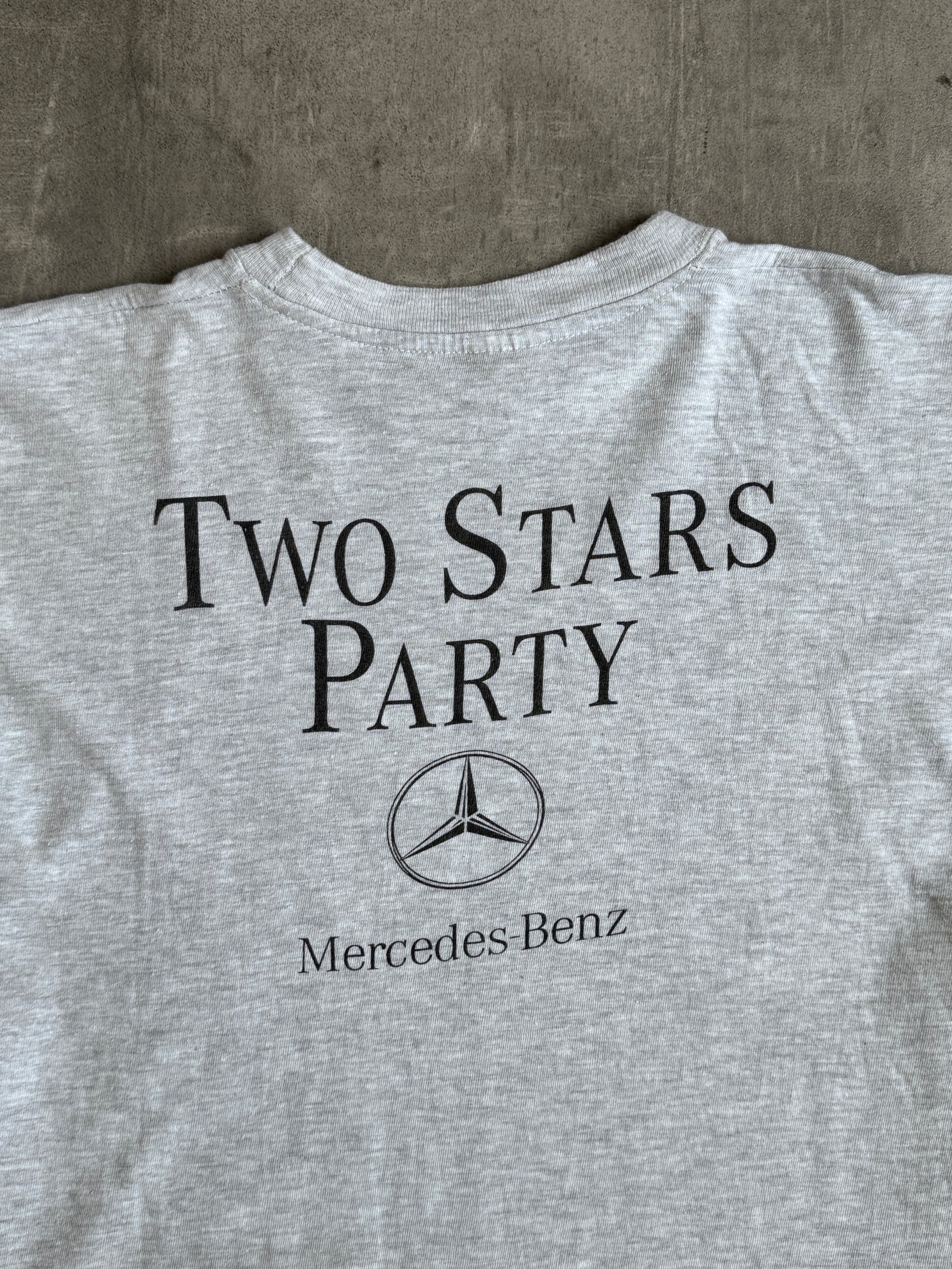Celebrate vintage glamour and automotive heritage with the Mercedes-Benz “Two Stars Party” Rita Hayworth Graphic Print Tee, a rare promotional piece blending Hollywood elegance with iconic branding. Featuring a striking graphic of actress Rita Hayworth, this tee references the golden era of cinema alongside the prestige of Mercedes-Benz. Crafted from soft cotton and finished with a classic fit, it captures collectible promotional design with strong retro appeal.
