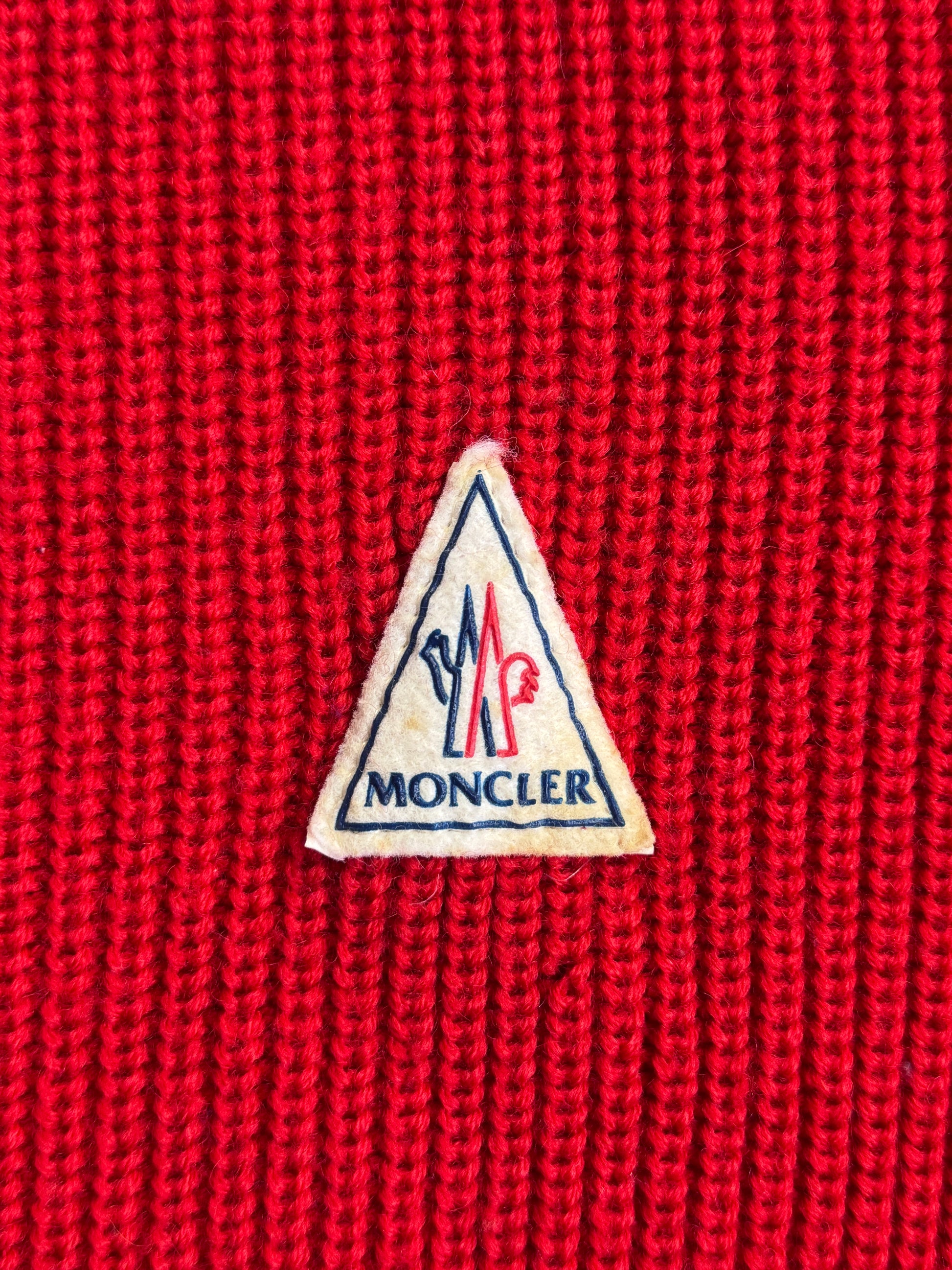 Moncler 80's Vintage Red Pure Wool Knit Crew Neck Sweater