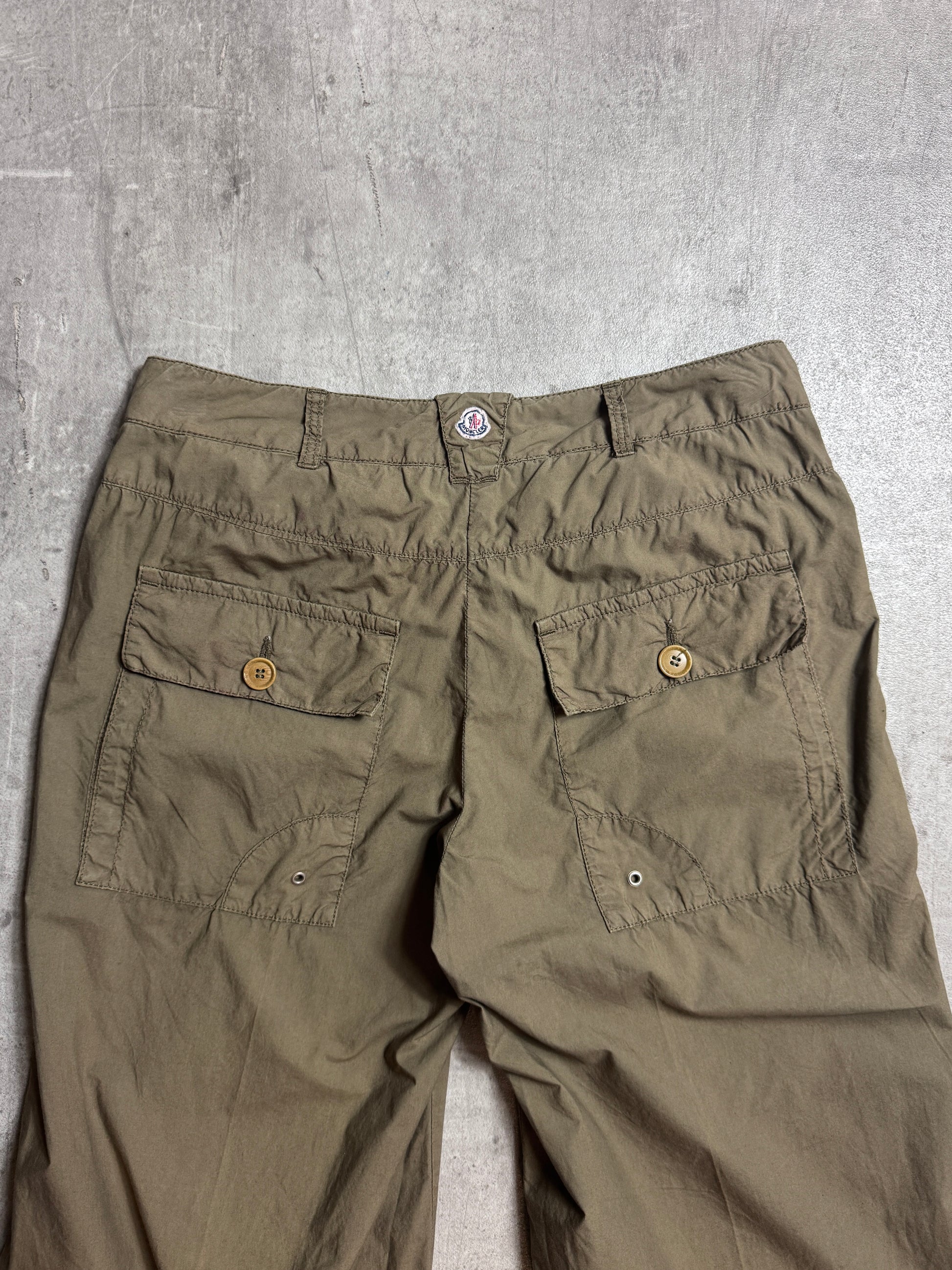 Moncler Khaki Low Waist Cotton Wide Leg Cargos