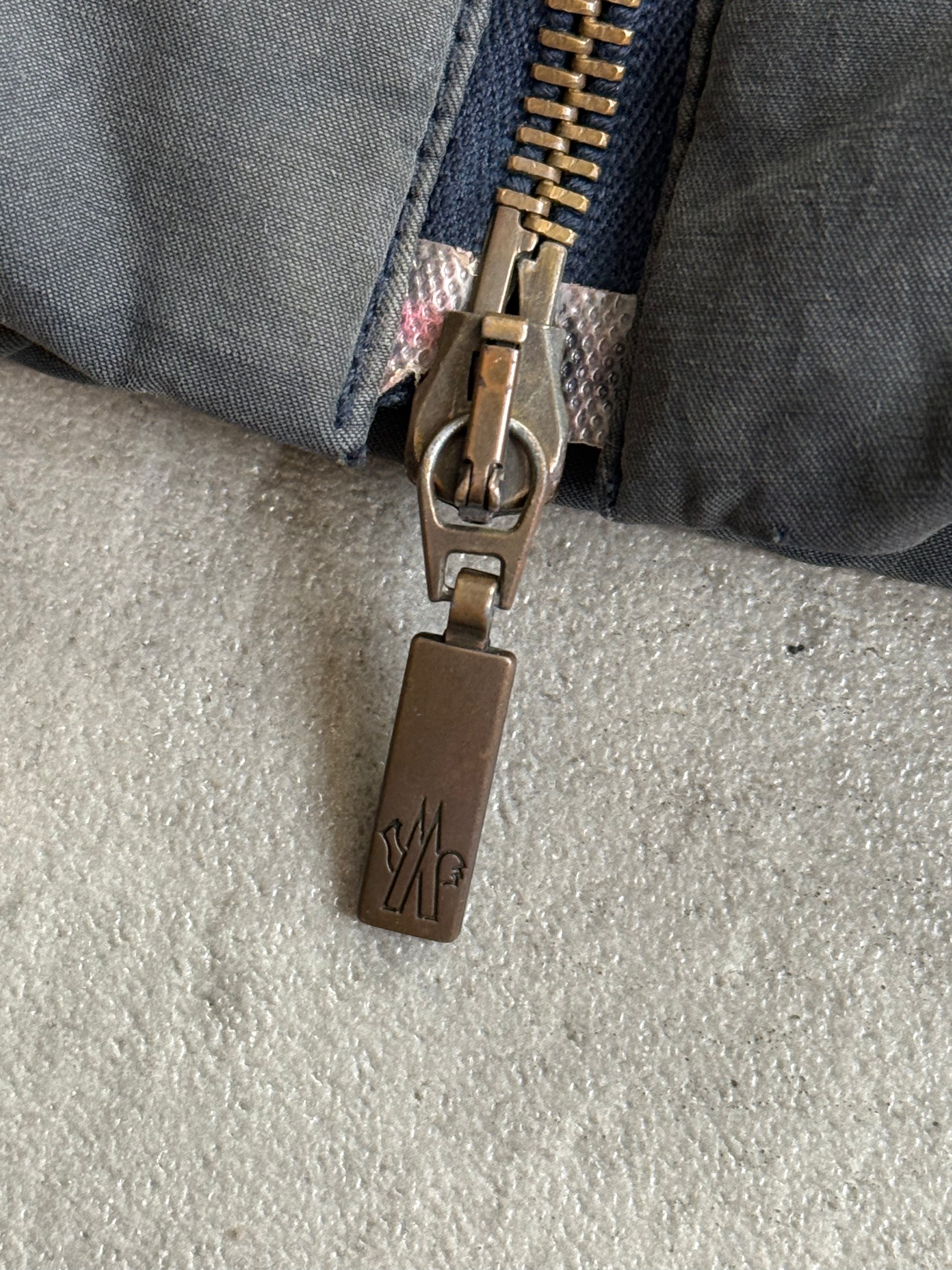 Stay stylishly warm with the Moncler Navy Trim Grey Down Puffer Jacket, a luxurious blend of premium design and high-performance outerwear. Crafted by Moncler, this jacket features insulated down filling for superior warmth, while the sleek navy trim adds a refined touch to its modern grey exterior.
