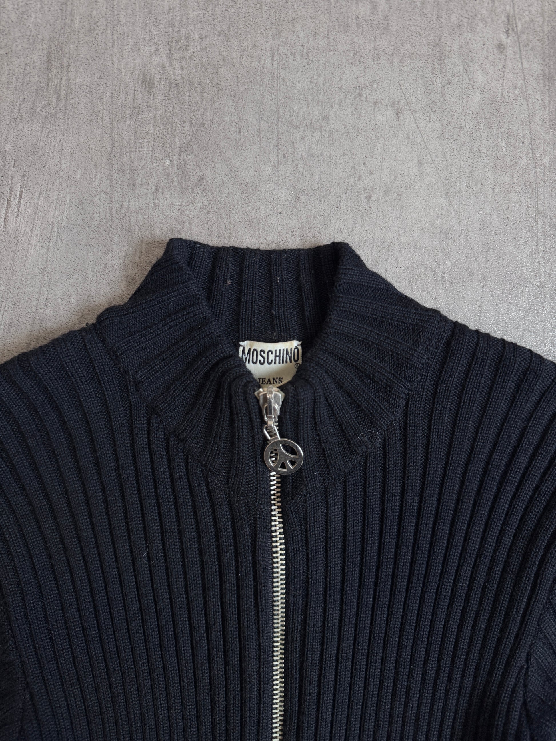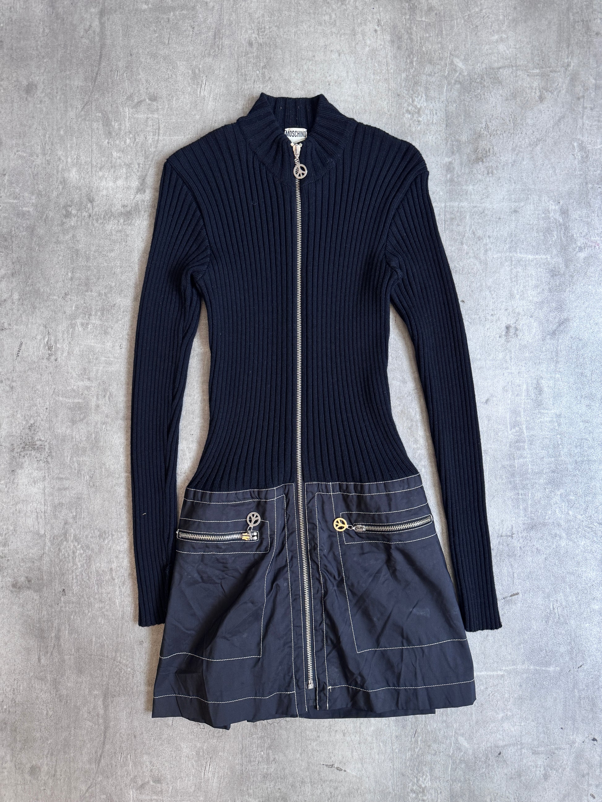 Moschino Peace&Love Zip Nylon Detailed Rib Knit Mini Dress