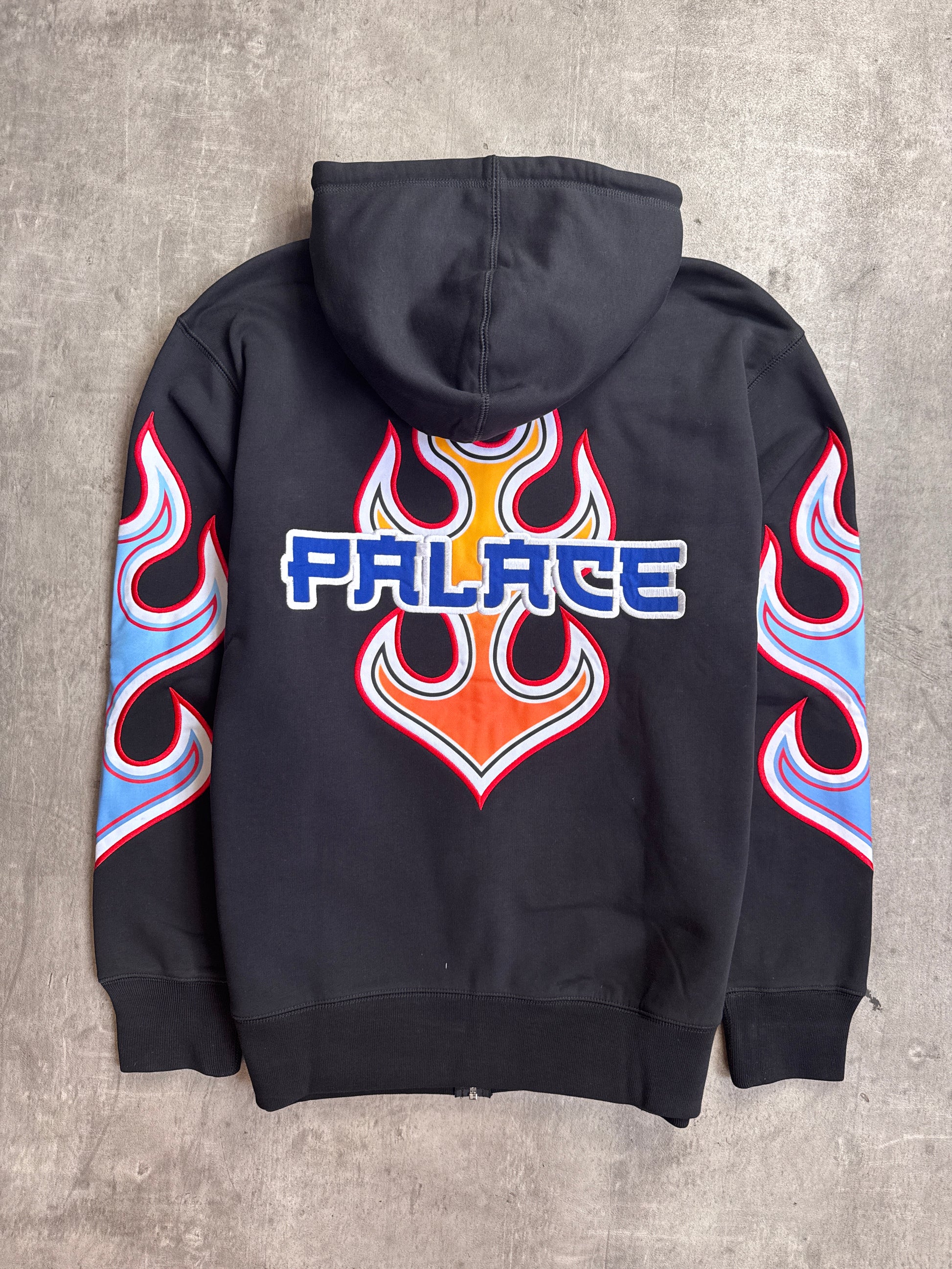 Palace 00s Black Flame Print Embroidered Zip Up Hoodie