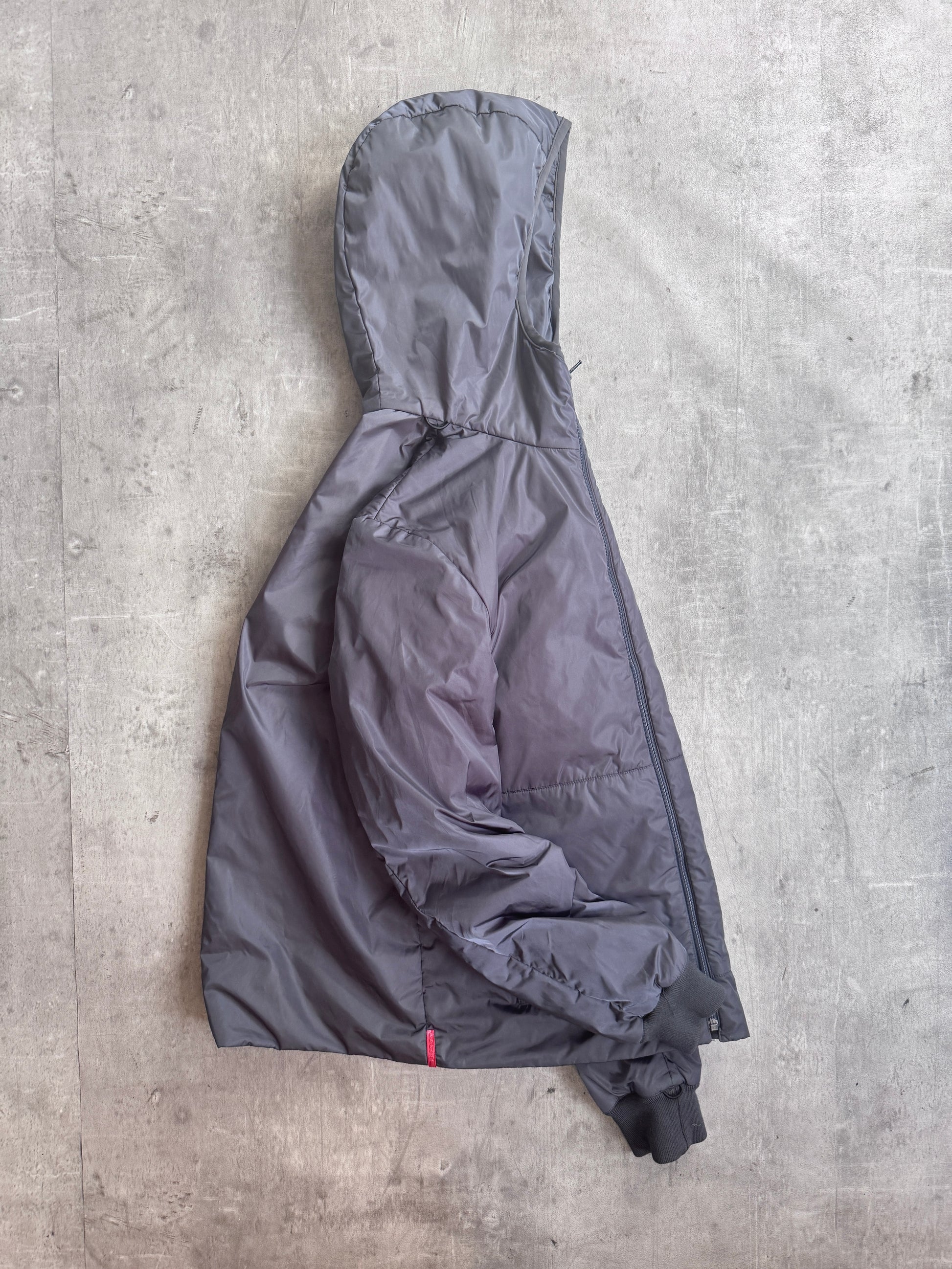 Prada Grey Nylon Insulated Hooded Technical Rain Jacket