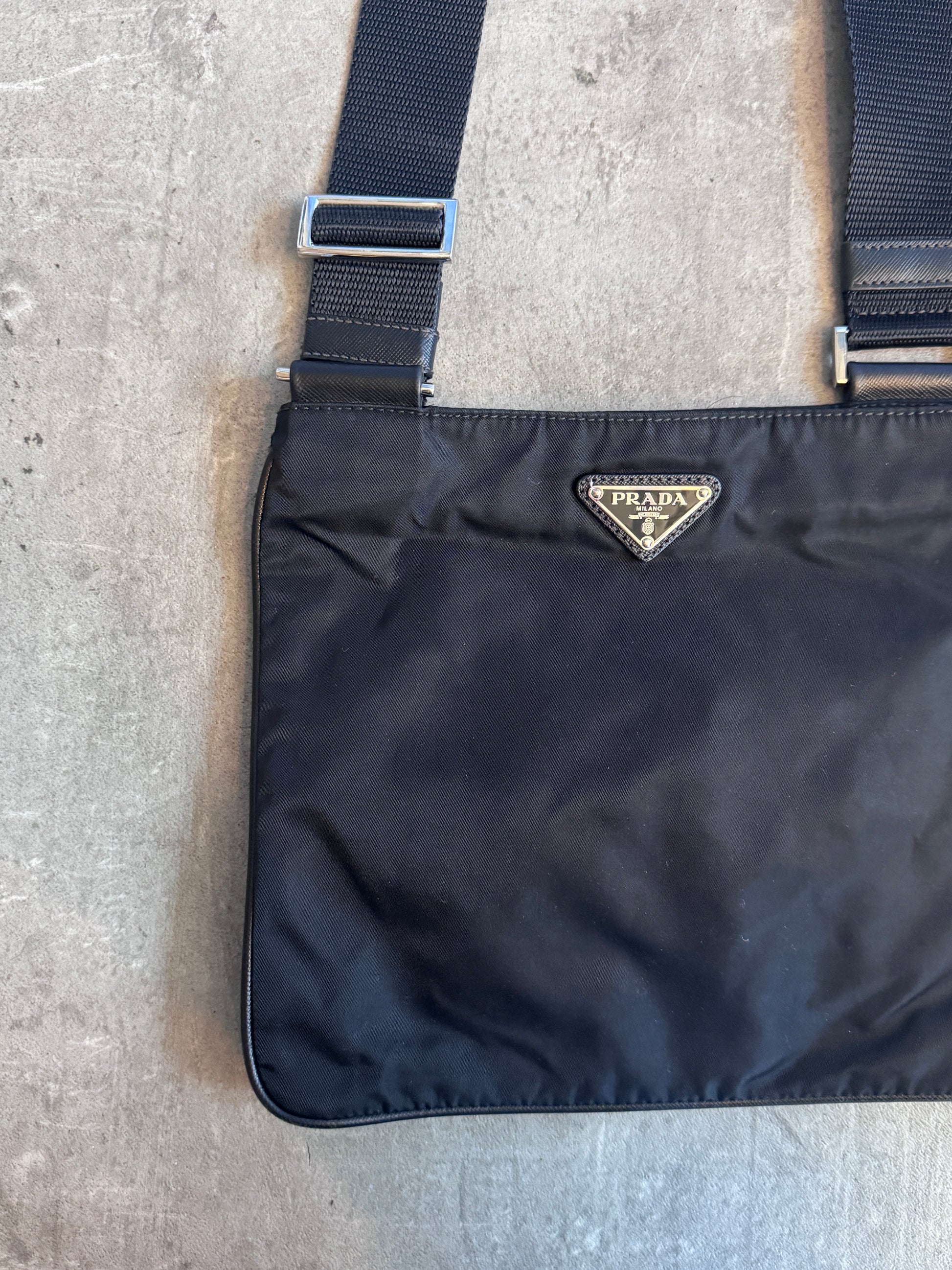 Prada Tessuto Black Nylon Plaque Logo Crossbody Bag