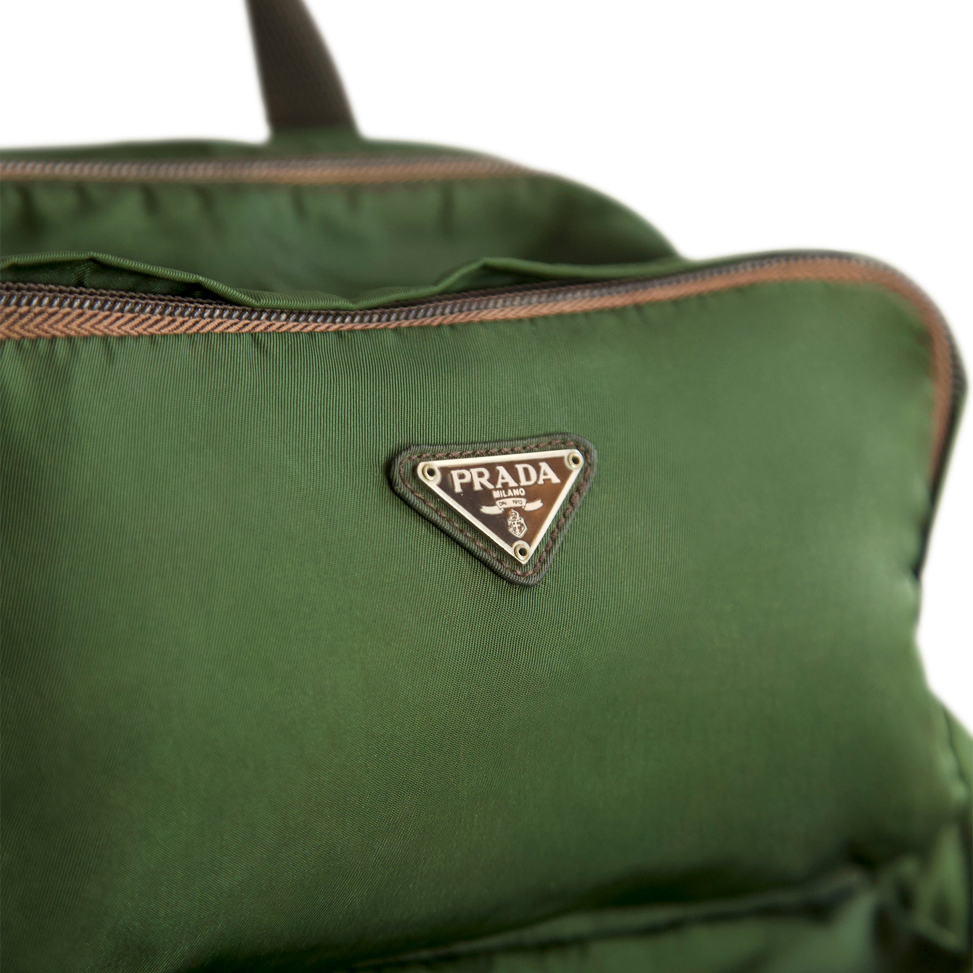 A defining example of Prada’s utilitarian luxury, this Tessuto Nylon Multi-Pocket Khaki Green Rucksack embodies the brand’s mastery of functional design and minimalist sophistication. Crafted from the house’s signature durable nylon fabric, the piece features a structured yet lightweight silhouette with multiple compartments for versatile everyday use. Finished in a rich khaki green tone and detailed with leather zip pulls and the iconic Prada triangle logo plaque, this rucksack seamlessly blends practicality with refined Italian craftsmanship, a true modern classic.