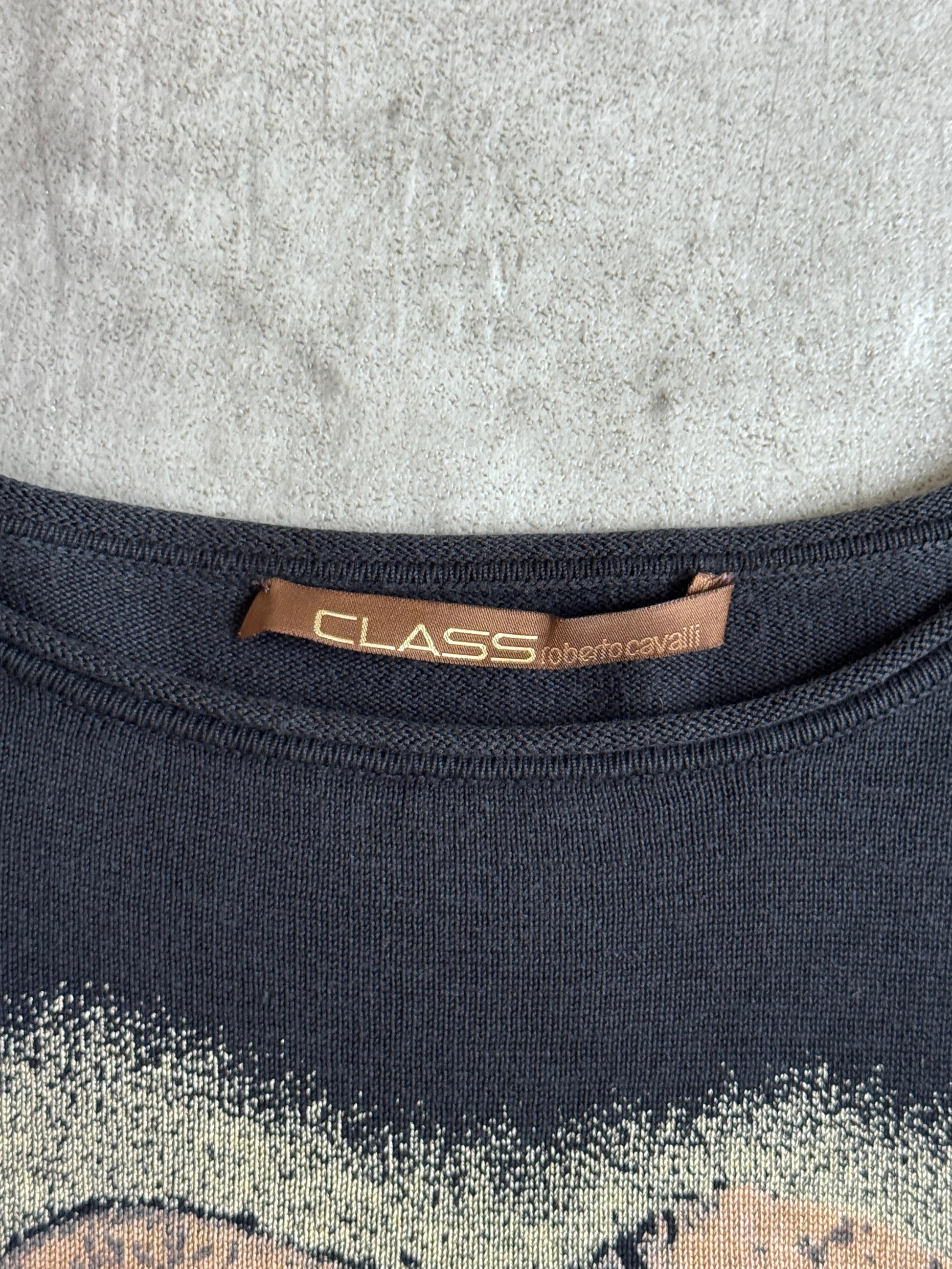 Roberto Cavalli Class Line Tattoo Graphic Print LS Tee