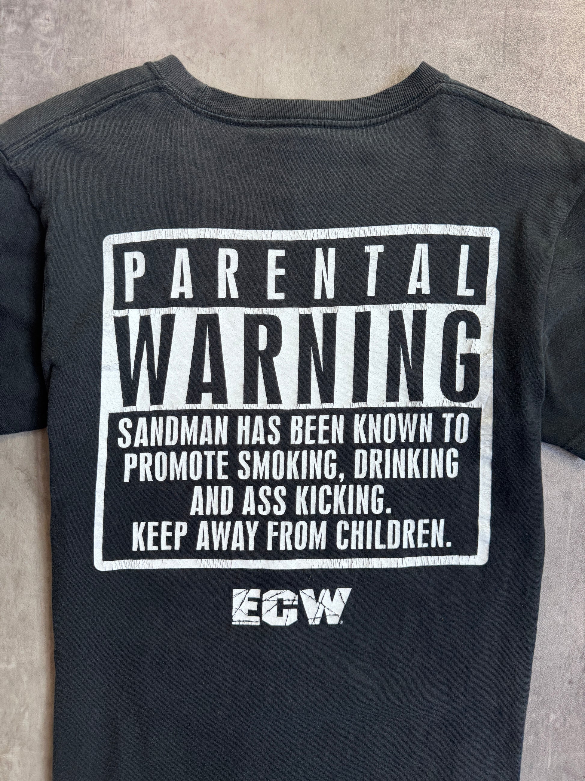Vintage 1998 Sandman Parental Warning ECW Double Graphic Tee