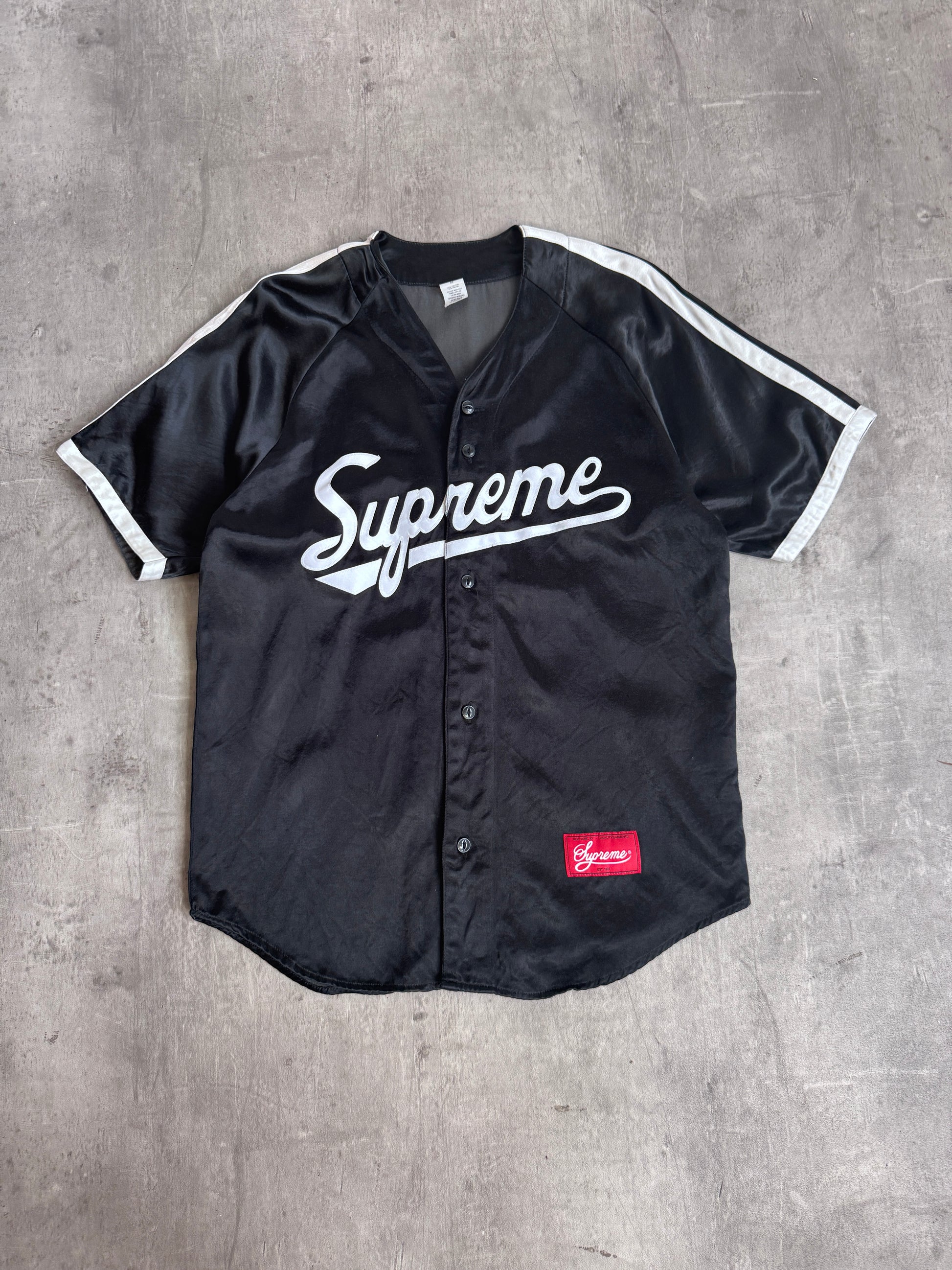 From Supreme’s Spring/Summer 2017 collection, this Satin Baseball Jersey blends classic American sportswear with the brand’s signature New York street attitude. Constructed from sleek satin fabric, it delivers a vintage-inspired silhouette with elevated detailing and an unmistakable Supreme finish.